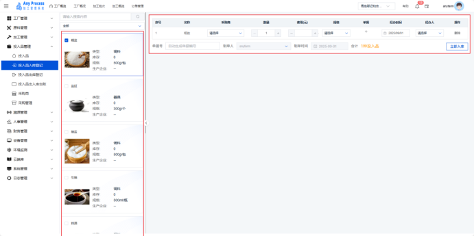 原料管理-原料入库登记