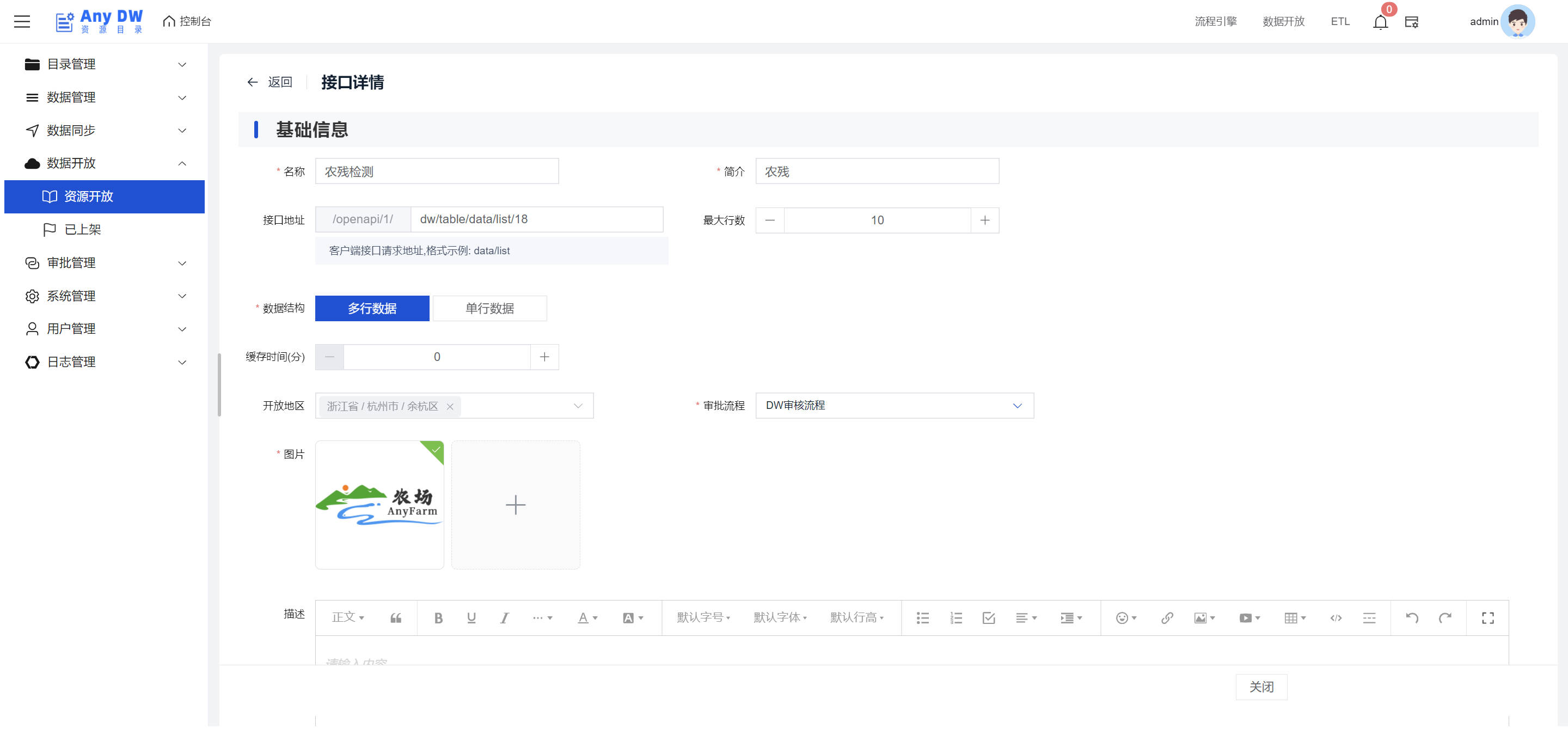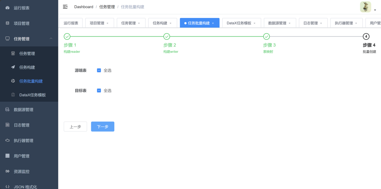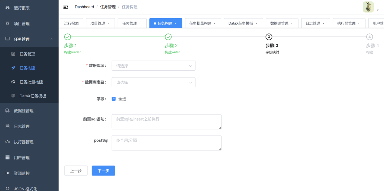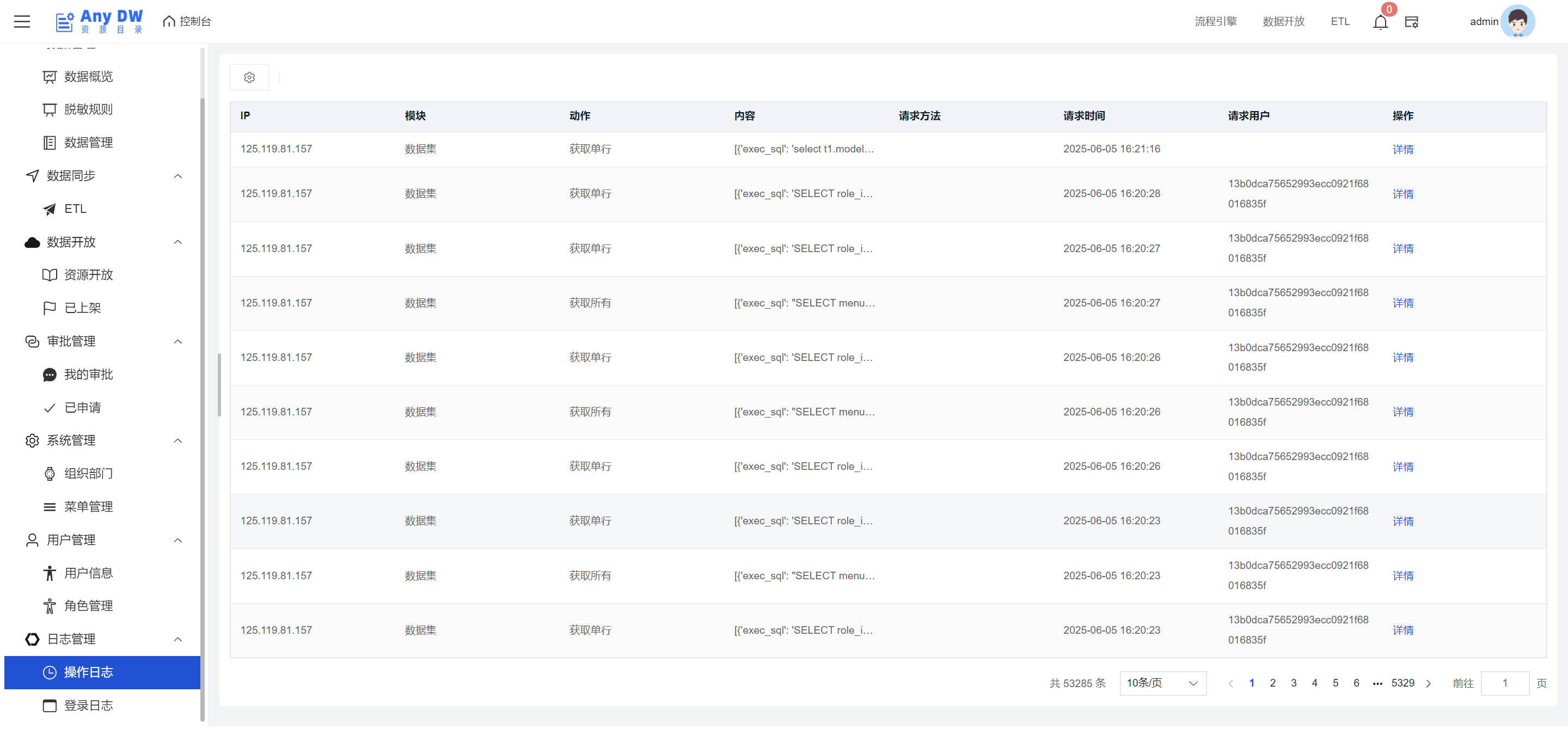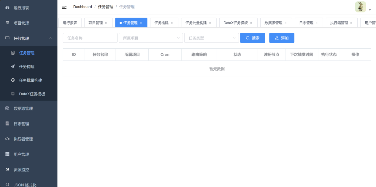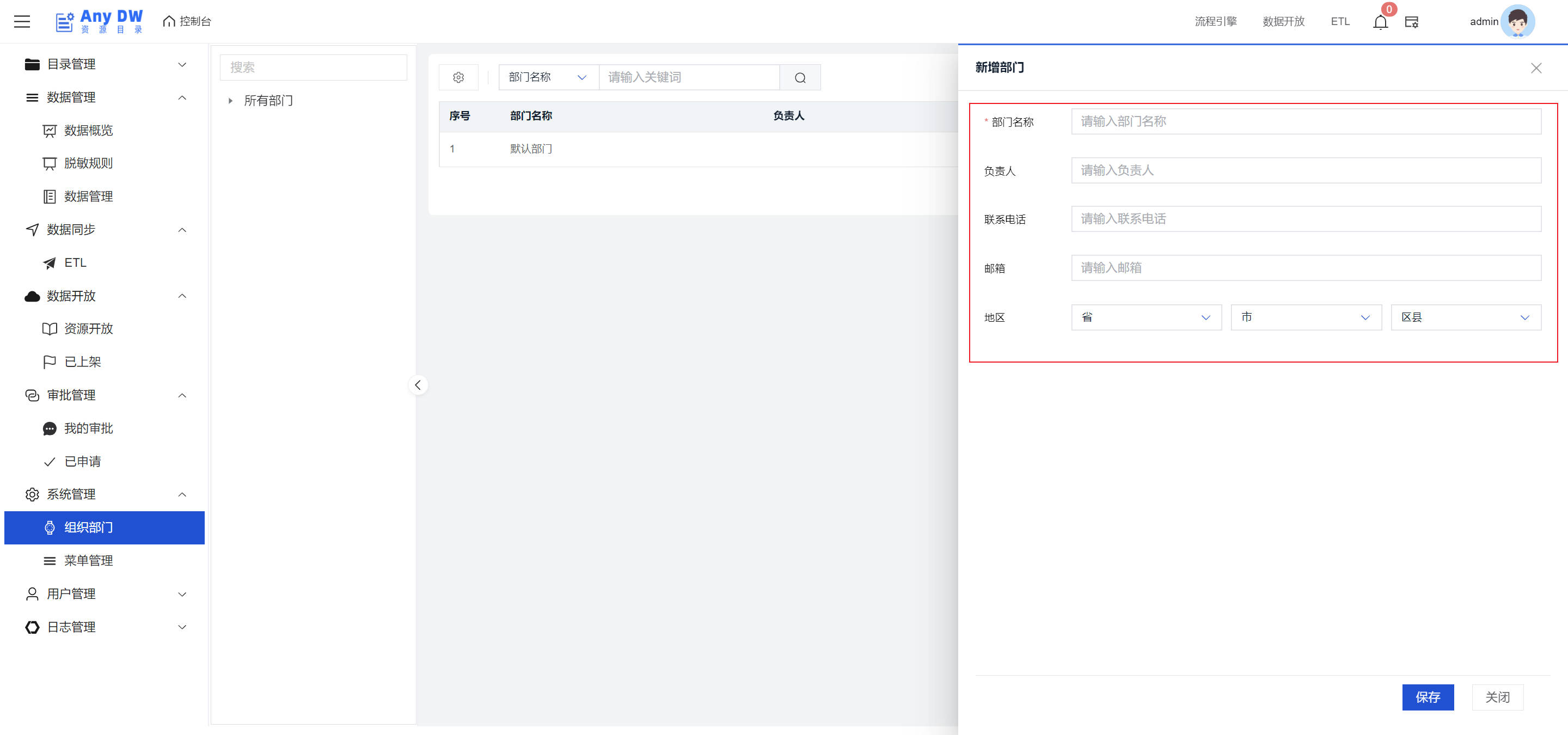 1.流程图  2.操作流程 2.1目录管理 2.1.1目录树 在目录树中添加所需要的类别,也能更好对后续资源进行分类管理,能够更方便快捷的找到所需要的资源。  2.1.2资源编目 在资源编目中可以在该资源中添加所需要的表。点击右侧的新建表,弹出弹窗,在弹窗内填写对应的信息,点击保存即可完成新建表。   在新增的表中可以对表进行编辑表、添加字段、删除、建表、模板设计的操作。  编辑表:可以对该表的名称、编码、简称进行修改。   字段:在字段中可以添加该表需要的字段,以及对该表的字段进行删除和编辑的操作  进入字段页面后,每张表都会有默认的字段(id、所在省、所在市、所在县等),这些是每个表所需要的,无法进行编辑修改的操作。  在右侧点击新增可以给该表新增字段。  在新增弹窗中填写相应的信息,点击保存完成字段的添加。  脱敏规则:该脱敏内容来自于数据管理中的脱敏规则,主要用于保护敏感数据的安全性和隐私性,同时确保数据在合法合规的范围内使用。  删除:对该表进行删除的操作。  建表:点击建表会生成建表语句,里面包含了在字段中添加的字段。点击弹窗中的建表按钮,即可完成建表。  在数据管理中找到该目录,就能看到刚建好的表。  模板设计(新增页、编辑页):模板设计即为对该表的样式进行修改,包括排列序号、标签位置等。  在表格的右侧,有该字段的编辑按钮,点击编辑按钮弹出弹窗,即可对该字段的显示名称、组件类型、排序号、是否必填进行修改,根据该表的需求可以自行进行修改。   在页面下方还有页面的参数设置,可以对该页面的标签位置和布局类型进行修改。  模板设计(列表页):列表页右侧有该字段的编辑按钮,点击编辑弹出编辑弹窗。  在该字段的编辑弹窗中可以对该字段的显示标题、排序号、是否隐藏、是否查询、查询类型信息进行修改。  在页面下方还有页面参数的设置,该页面参数中含有弹窗宽度和弹窗位置的信息,可以对该表格点击弹出的弹出的弹窗样式进行修改。 2.2数据管理 2.2.1脱敏规则 脱敏功能主要用于保护敏感数据的安全性和隐私性,同时确保数据在合法合规的范围内使用。  在脱敏规则中创建的脱敏算法数据,在字段管理中能使用。  2.2.2数据管理 数据管理中展示的是每个目录下已经创建好的表,在数据管理中可以对每个表进行新增、编辑等操作。  点击右上角新增打开新增弹窗,在新增弹窗中填写相应的信息,点击保存完成新增。  新增完在该表格中就能看到刚添加的信息。 在每行信息的右侧有编辑和删除按钮,可以对该行内容进行编辑和删除的操作。 在表格的右上角还有导入和导出的按钮,导入可以将其他slsx类型文件的内容导入该表格中,导出可以将该表格的数据导出为xlsx文件。  2.3数据同步 用于实现多种异构数据源之间的数据同步。  2.3.1运行报表  成功:显示成功执行的数据同步任务数量。 失败:显示失败的数据同步任务数量。 执行中:显示当前正在执行的数据同步任务数量。 这些统计信息可以帮助用户快速了解任务的整体执行情况。在下方的图表中用户可以通过图表直观地看到任务执行的趋势,例如哪些日期任务成功率较高,哪些日期任务失败较多。 2.3.2项目管理 项目管理功能是数据同步任务管理平台中的核心组成部分。在该页面中可以添加同步的项目。  2.3.3任务管理 2.3.3.1任务管理 任务管理页面是一个用于管理和监控数据同步任务的界面。  点击右上角的添加弹出弹窗,输入相应的信息点击确定完成添加。  2.3.3.2任务构建 数据资源目录的任务构建功能是一个用于创建和配置数据同步任务的界面,它允许用户定义如何从源数据源读取数据以及如何将数据写入目标数据存储。      2.3.3.3任务批量构建 任务批量构建功能是数据资源目录管理系统中的一个高级功能,它允许用户一次性创建多个数据同步任务,从而提高工作效率,减少重复性工作。     2.3.3.4 DataX任务模板 DataX任务模板功能是数据资源目录管理系统中的一个实用工具,它允许用户创建可复用的数据同步任务模板。这些模板定义了数据同步的标准流程和配置,使得用户能够快速启动新的数据同步任务而无需从头开始配置。  2.3.4数据源管理 数据源管理功能是数据资源目录管理系统中的一个核心模块,它允许用户添加、配置、维护和监控数据源。数据源是数据同步、数据集成和数据分析的基础,因此,有效的数据源管理对于确保数据质量和数据操作的效率至关重要。  2.3.5日志管理 日志管理功能是数据资源目录管理系统中的一个重要模块,它用于记录、存储、分析和查询系统中的各种操作日志和系统日志。右侧还有清除按钮可以对日志数据进行清除。  2.3.6执行器管理 执行器管理功能是数据资源目录管理系统中的一个关键模块,它负责管理和维护系统中用于执行数据同步任务的执行器。  2.3.7用户管理 用户管理功能是数据资源目录管理系统中的一个基础且重要的模块,它允许系统管理员对用户账户进行创建、维护和监控。这个功能对于控制用户访问权限、确保数据安全和提高系统管理效率至关重要。这里可以对用户进行添加、编辑和删除的操作。  2.3.8资源监控 负责实时监控和展示系统中各种资源的使用情况和性能指标。这个功能对于确保系统稳定运行、优化资源分配和预防潜在问题至关重要。  2