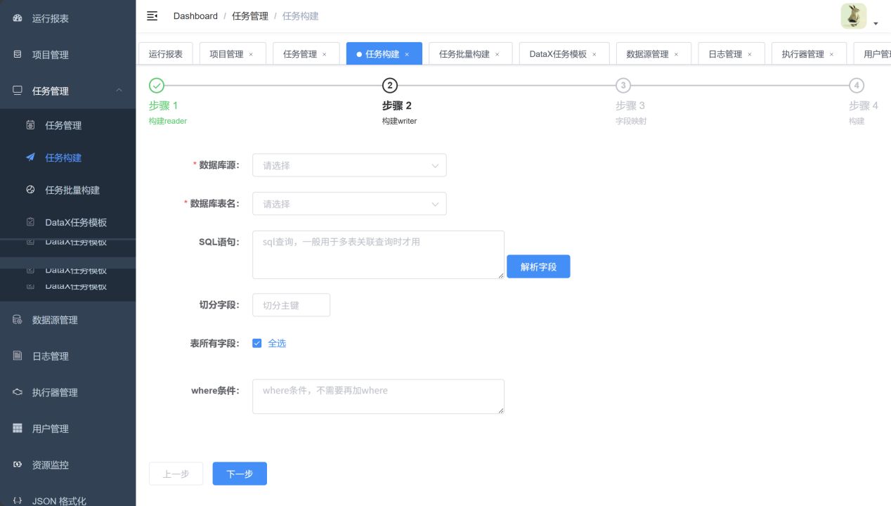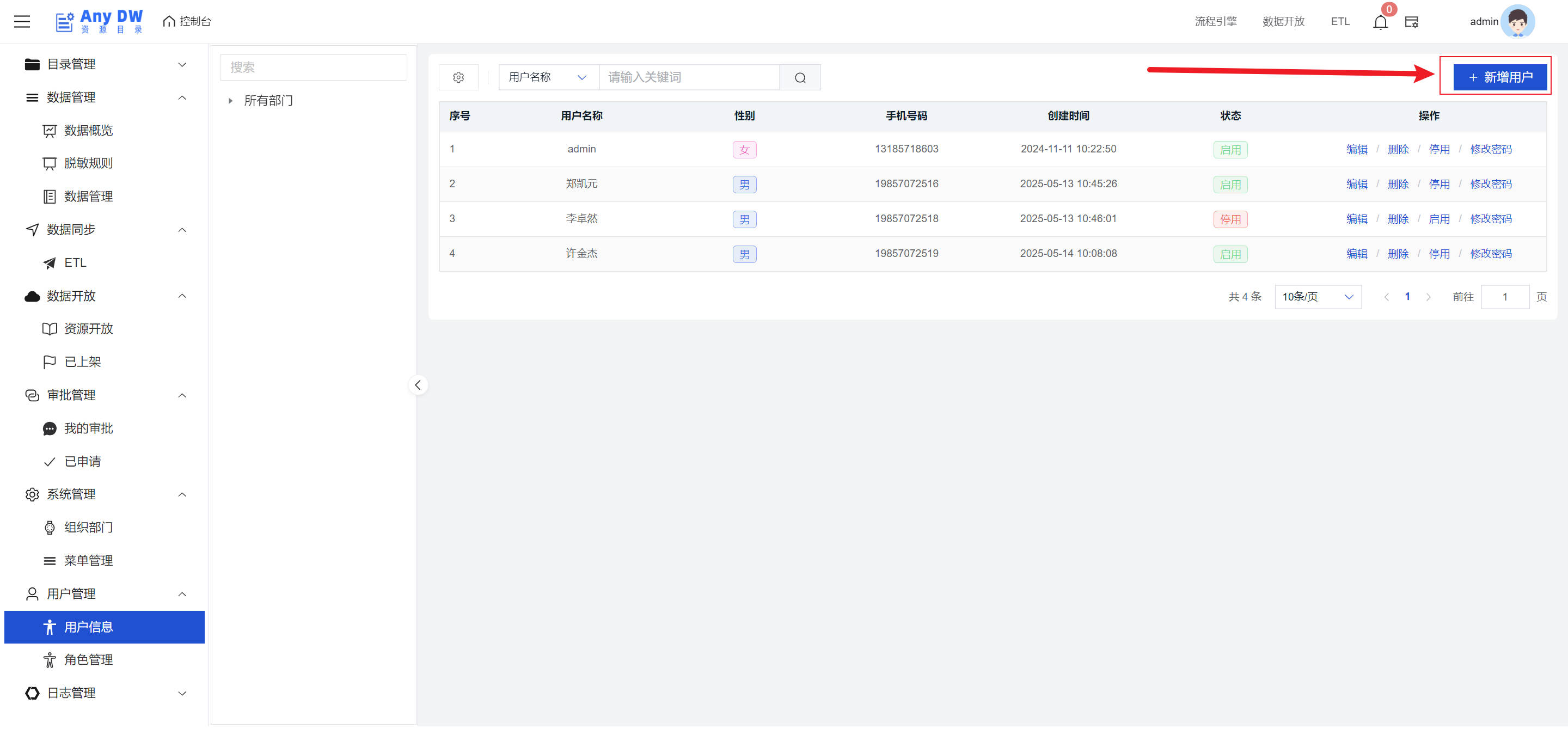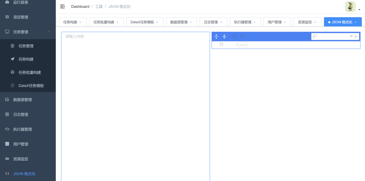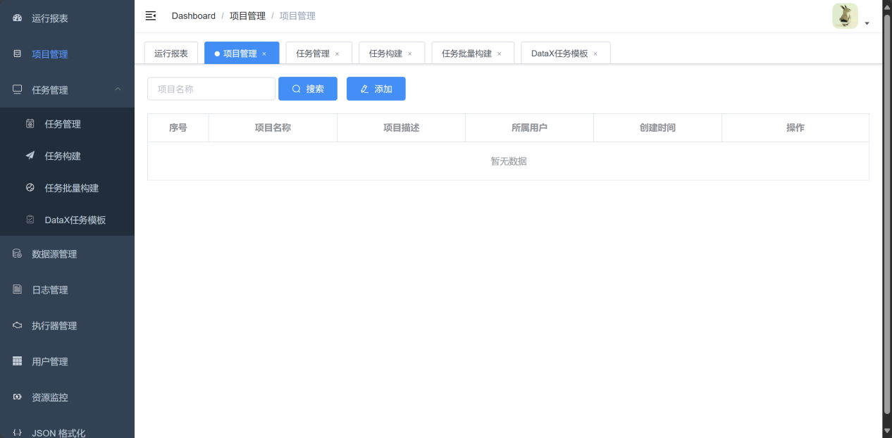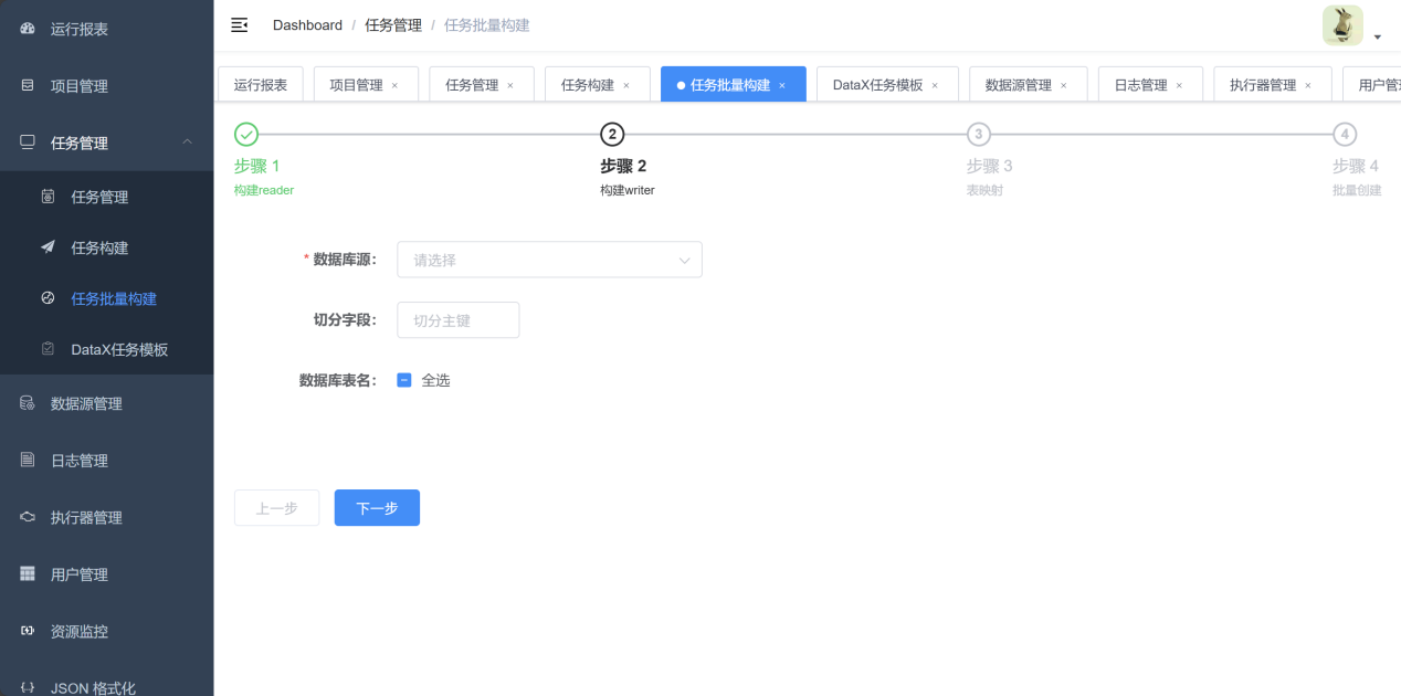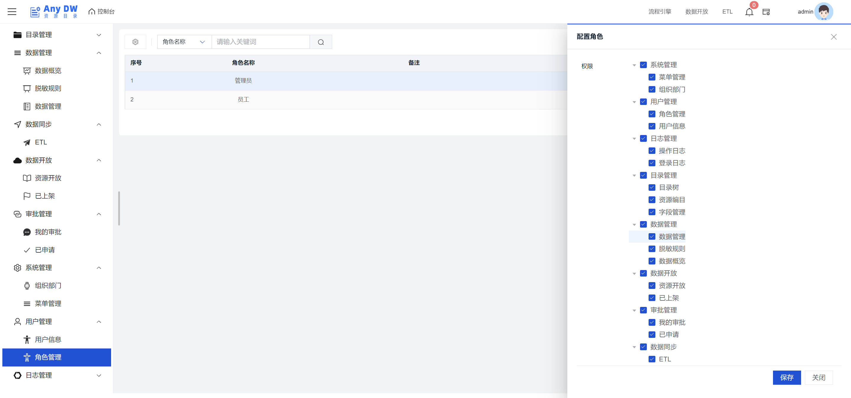 1.流程图  2.操作流程 2.1目录管理 2.1.1目录树 在目录树中添加所需要的类别,也能更好对后续资源进行分类管理,能够更方便快捷的找到所需要的资源。  2.1.2资源编目 在资源编目中可以在该资源中添加所需要的表。点击右侧的新建表,弹出弹窗,在弹窗内填写对应的信息,点击保存即可完成新建表。   在新增的表中可以对表进行编辑表、添加字段、删除、建表、模板设计的操作。  编辑表:可以对该表的名称、编码、简称进行修改。   字段:在字段中可以添加该表需要的字段,以及对该表的字段进行删除和编辑的操作  进入字段页面后,每张表都会有默认的字段(id、所在省、所在市、所在县等),这些是每个表所需要的,无法进行编辑修改的操作。  在右侧点击新增可以给该表新增字段。  在新增弹窗中填写相应的信息,点击保存完成字段的添加。  脱敏规则:该脱敏内容来自于数据管理中的脱敏规则,主要用于保护敏感数据的安全性和隐私性,同时确保数据在合法合规的范围内使用。  删除:对该表进行删除的操作。  建表:点击建表会生成建表语句,里面包含了在字段中添加的字段。点击弹窗中的建表按钮,即可完成建表。  在数据管理中找到该目录,就能看到刚建好的表。  模板设计(新增页、编辑页):模板设计即为对该表的样式进行修改,包括排列序号、标签位置等。  在表格的右侧,有该字段的编辑按钮,点击编辑按钮弹出弹窗,即可对该字段的显示名称、组件类型、排序号、是否必填进行修改,根据该表的需求可以自行进行修改。   在页面下方还有页面的参数设置,可以对该页面的标签位置和布局类型进行修改。  模板设计(列表页):列表页右侧有该字段的编辑按钮,点击编辑弹出编辑弹窗。  在该字段的编辑弹窗中可以对该字段的显示标题、排序号、是否隐藏、是否查询、查询类型信息进行修改。  在页面下方还有页面参数的设置,该页面参数中含有弹窗宽度和弹窗位置的信息,可以对该表格点击弹出的弹出的弹窗样式进行修改。 2.2数据管理 2.2.1脱敏规则 脱敏功能主要用于保护敏感数据的安全性和隐私性,同时确保数据在合法合规的范围内使用。  在脱敏规则中创建的脱敏算法数据,在字段管理中能使用。  2.2.2数据管理 数据管理中展示的是每个目录下已经创建好的表,在数据管理中可以对每个表进行新增、编辑等操作。  点击右上角新增打开新增弹窗,在新增弹窗中填写相应的信息,点击保存完成新增。  新增完在该表格中就能看到刚添加的信息。 在每行信息的右侧有编辑和删除按钮,可以对该行内容进行编辑和删除的操作。 在表格的右上角还有导入和导出的按钮,导入可以将其他slsx类型文件的内容导入该表格中,导出可以将该表格的数据导出为xlsx文件。  2.3数据同步 用于实现多种异构数据源之间的数据同步。  2.3.1运行报表  成功:显示成功执行的数据同步任务数量。 失败:显示失败的数据同步任务数量。 执行中:显示当前正在执行的数据同步任务数量。 这些统计信息可以帮助用户快速了解任务的整体执行情况。在下方的图表中用户可以通过图表直观地看到任务执行的趋势,例如哪些日期任务成功率较高,哪些日期任务失败较多。 2.3.2项目管理 项目管理功能是数据同步任务管理平台中的核心组成部分。在该页面中可以添加同步的项目。  2.3.3任务管理 2.3.3.1任务管理 任务管理页面是一个用于管理和监控数据同步任务的界面。  点击右上角的添加弹出弹窗,输入相应的信息点击确定完成添加。  2.3.3.2任务构建 数据资源目录的任务构建功能是一个用于创建和配置数据同步任务的界面,它允许用户定义如何从源数据源读取数据以及如何将数据写入目标数据存储。      2.3.3.3任务批量构建 任务批量构建功能是数据资源目录管理系统中的一个高级功能,它允许用户一次性创建多个数据同步任务,从而提高工作效率,减少重复性工作。     2.3.3.4 DataX任务模板 DataX任务模板功能是数据资源目录管理系统中的一个实用工具,它允许用户创建可复用的数据同步任务模板。这些模板定义了数据同步的标准流程和配置,使得用户能够快速启动新的数据同步任务而无需从头开始配置。  2.3.4数据源管理 数据源管理功能是数据资源目录管理系统中的一个核心模块,它允许用户添加、配置、维护和监控数据源。数据源是数据同步、数据集成和数据分析的基础,因此,有效的数据源管理对于确保数据质量和数据操作的效率至关重要。  2.3.5日志管理 日志管理功能是数据资源目录管理系统中的一个重要模块,它用于记录、存储、分析和查询系统中的各种操作日志和系统日志。右侧还有清除按钮可以对日志数据进行清除。  2.3.6执行器管理 执行器管理功能是数据资源目录管理系统中的一个关键模块,它负责管理和维护系统中用于执行数据同步任务的执行器。  2.3.7用户管理 用户管理功能是数据资源目录管理系统中的一个基础且重要的模块,它允许系统管理员对用户账户进行创建、维护和监控。这个功能对于控制用户访问权限、确保数据安全和提高系统管理效率至关重要。这里可以对用户进行添加、编辑和删除的操作。  2.3.8资源监控 负责实时监控和展示系统中各种资源的使用情况和性能指标。这个功能对于确保系统稳定运行、优化资源分配和预防潜在问题至关重要。  2
