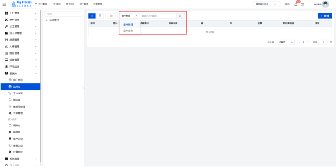 品种库模块是云端库板块的重要组成,专注于加工业务相关品种信息的集中管理,涵盖品种类目、基础属性及关联知识库的维护,为原料采购、加工工艺适配等环节提供标准化品种数据支撑,助力企业规范品种管理,提升生产流程的精准性与协同性 。  新增:需要添加新的品种信息时,点击右上角新增,出现新增弹窗,填充相关品种信息,点击确认完成新增操作,即可将新品种信息添加到该界面中。   搜索:需要快速定位某一品种的信息时,可以通过关键字搜索来查询,选择关键则类型,输入相应关键字进行搜索。