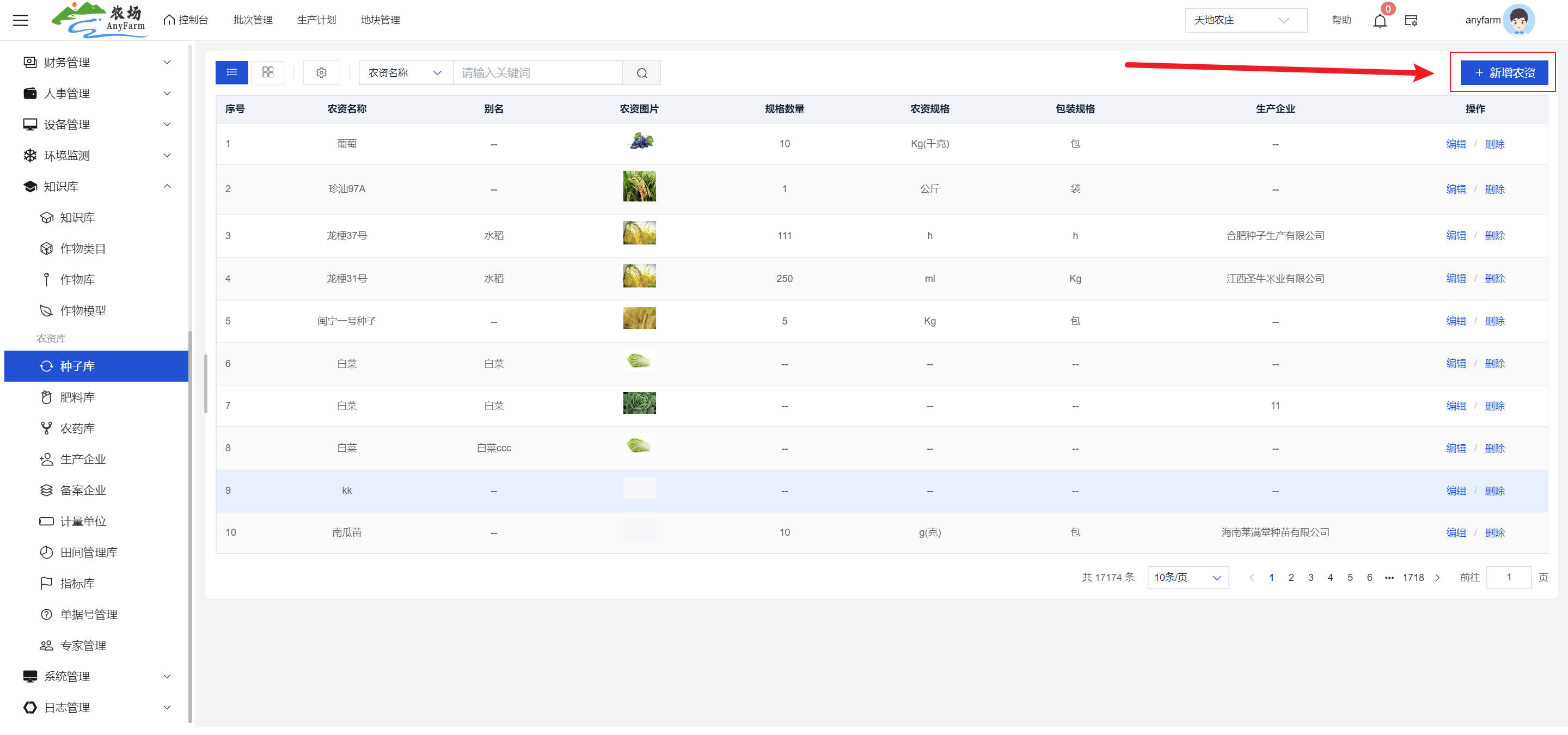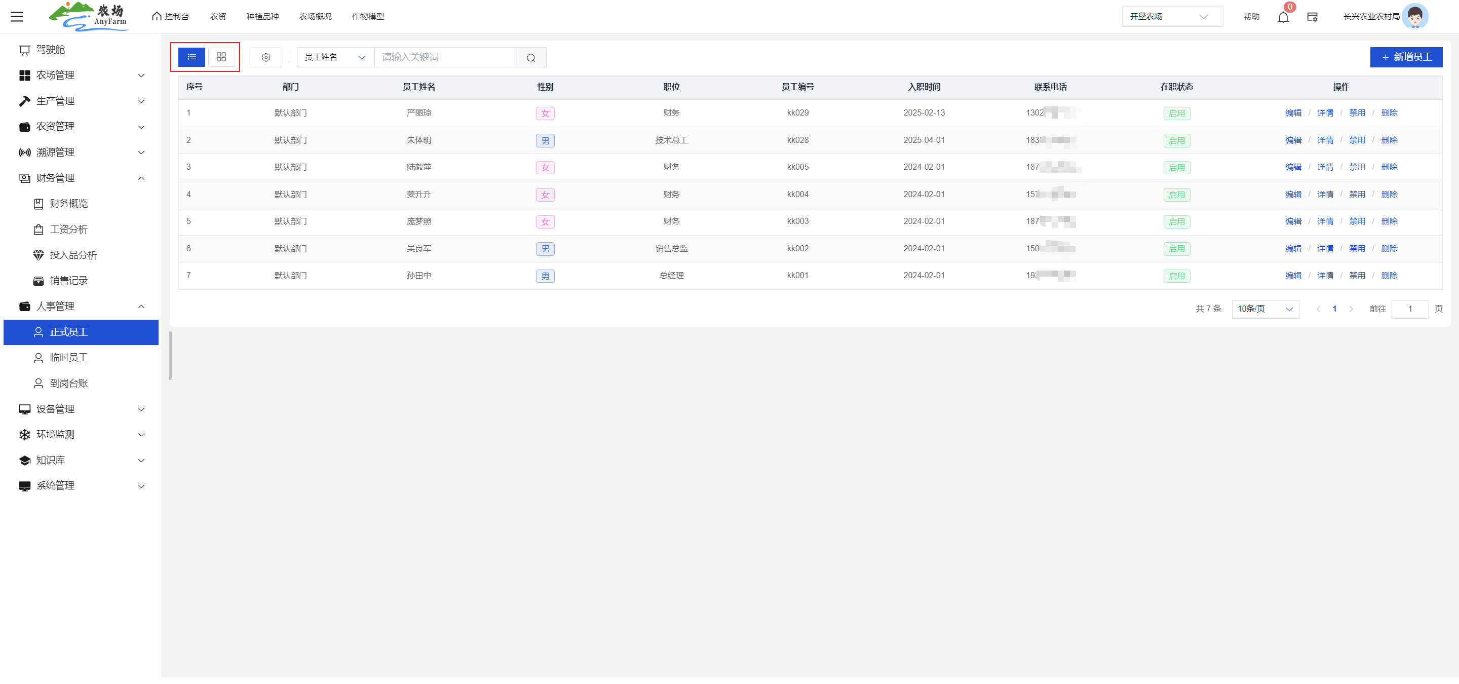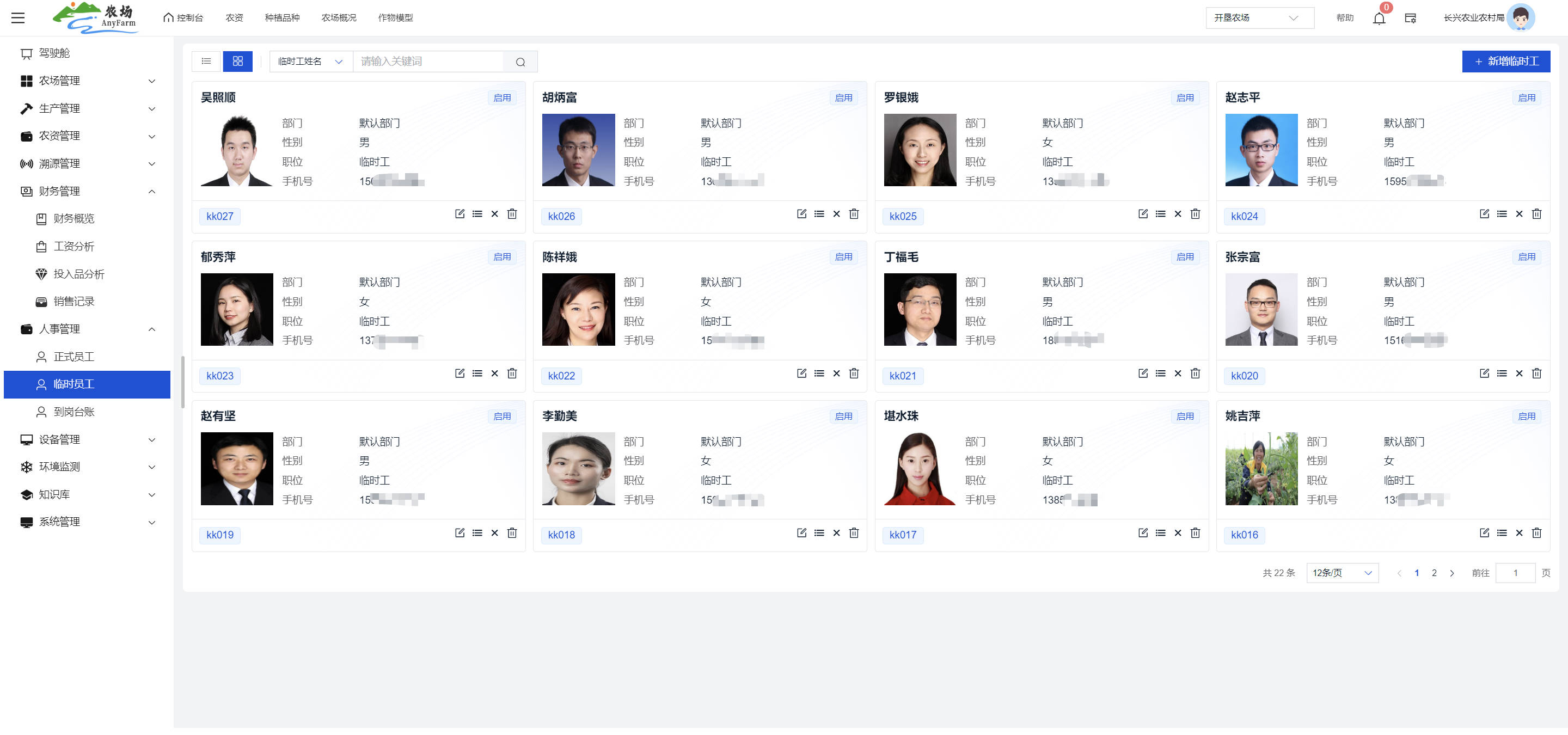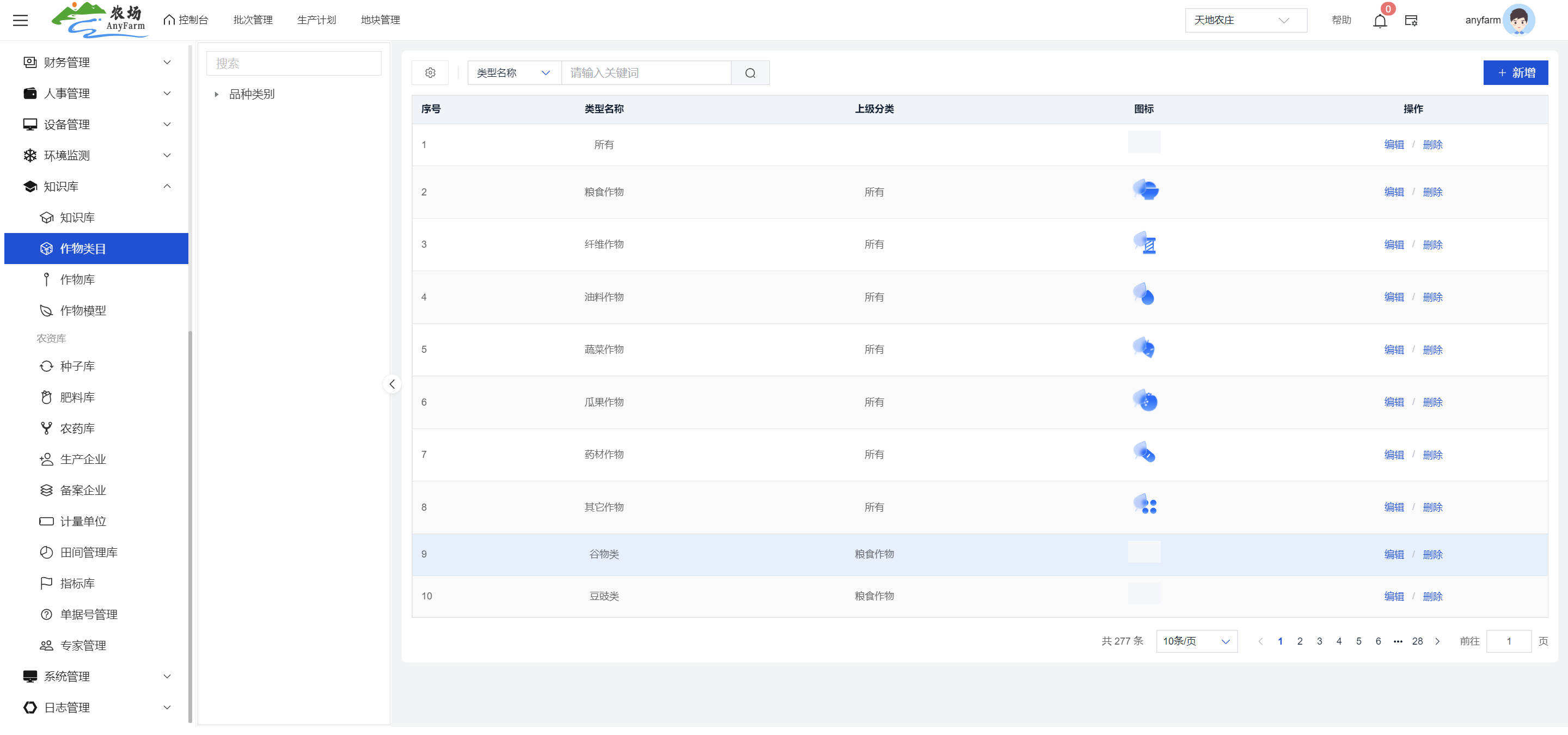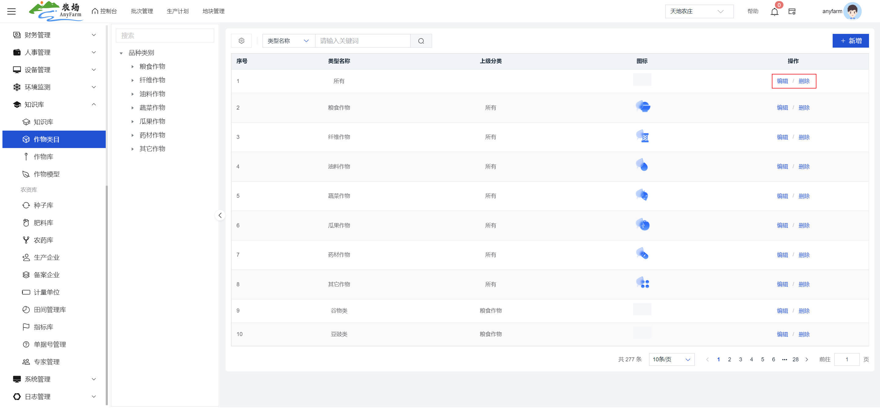 一、平台简介 AnyFarm农场管理平台是利用物联网、大数据、人工智能等现代信息技术,对农业生产进行全方位、全过程的智能化管理和控制。它通过传感器等设备,实时监测农田环境、作物生长、土壤墒情等信息,并通过数据分析和智能决策,实现精准灌溉、施肥、病虫害防治等操作,从而提高农业生产效率,降低资源消耗,保障农产品质量。 二、产品优势 1.全流程数据化管理,提升生产效率: * 优势: * 系统覆盖农场管理的各个环节,实现数据统一采集、存储和分析。 * 通过数据分析,优化生产计划,减少资源浪费,提高生产效率。 * 实时监测农场环境和生产状态,及时发现并解决问题。 * 体现: * 从农场基础信息录入,到生产计划制定,再到农产品溯源,全程数据化管理。 * 通过数据分析,实现精准施肥、精准灌溉等操作,提高资源利用率。 2. 智能化决策支持,降低生产风险: * 优势: * 利用机器学习模型,实现农产品质量预测、产量预测、病虫害预警等功能。 * 为农场管理者提供科学的决策依据,降低生产风险。 * 通过数据分析,预测市场行情,帮助农场及时调整生产策略。 * 体现: * 通过模型训练,预测农产品产量和质量,提前做好准备。 * 通过病虫害预警模型,及时发现并处理病虫害,减少损失。 3. 全程可追溯,保障农产品质量安全: * 优势: * 实现农产品从生产到销售的全程可追溯,保障产品质量安全。 * 消费者可以通过溯源码查询农产品生产信息,增强信任感。 * 提高农产品品牌价值,增强市场竞争力。 * 体现: * 记录农产品生产、加工、检测等信息,并与溯源码关联。 * 消费者可以通过手机扫描溯源码,了解农产品详细信息。 三、业务流程 流程说明: 1. 基础信息管理 * 农场管理: 对已添加的农场进行管理,包括信息修改、删除等操作。 * 员工管理: 录入和管理农场员工信息,包括姓名、工号、职位、联系方式等。 * 区域管理: 划分农场区域,如种植区、养殖区、办公区等,方便后续管理。 * 地块管理: 将农场区域进一步细分为地块,记录地块编号、面积、种植作物等信息。 * 设备管理: 录入和管理农场使用的各种设备,如灌溉设备、施肥设备、监测设备等。 * 计量单位: 设置系统中使用的计量单位,如面积单位、重量单位等。 * 指标库: 建立农产品质量、环境监测等相关指标库,为后续数据分析提供基础。 2. 生产管理 * 添加品种: 录入农场种植或养殖的品种信息,包括品种名称、特性、生长周期等。 * 品种管理: 对已添加的品种进行管理,包括信息修改、删除等操作。 * 添加农资: 录入农场使用的农资信息,如种子、肥料、农药等。 * 农资管理: 对已添加的农资进行管理,包括信息修改、删除等操作。 * 农资店: 如果农场有自己的农资店,则可以录入和管理农资店的信息。 * 农资出入库: 记录农资的出入库情况,实现农资库存管理。 * 生产计划: 制定农场的生产计划,包括种植或养殖时间、产量目标、农资使用计划等。 * 批次管理: 对农产品进行批次管理,记录批次信息、生产过程、质量检测等。 * 生产任务: 根据生产计划,生成具体的生产任务,分配给员工执行。 3. 溯源管理 * 采收管理: 记录农产品的采收情况,包括采收时间、产量、质量等。 * 加工管理: 如果农产品需要进行加工,则记录加工过程和相关信息。 * 检测记录: 记录农产品质量检测、环境监测等数据。 * 赋码管理: 对农产品进行赋码,实现产品溯源。 四、操作指南 4.1农场概况 界面功能概述: 该界面作为农场的首页及控制台界面,为用户呈现了农场的整体概况信息。在这里,用户能够清晰地查看到农场的数量、各个地块的数量、当前在职的员工人数、实时的天气状况等重要信息。同时,该界面还为用户提供了便捷的操作入口,例如可以进行农场的管理操作以及新增员工等常用功能,方便用户对农场的基本信息进行快速的了解和管理。  4.1.1.1 农场概况 界面功能概述: 用户可以点击标红的地方跳转到农场管理跳转到农场管理界面。  用户点击界面中标红的区域即可跳转到农场管理界面。在该界面中,用户可以全面了解农场的各项详细信息,如农场的占地面积、具体的种植区域划分、在职员工的数量及基本信息、各类设备的运行情况、今日和明日的农事安排等。这些信息的展示有助于用户对农场的整体运营状况有一个清晰的认识,同时也为后续的管理决策提供了有力的数据支持。此外,用户还可以在该界面进行一些基础的管理操作,如编辑农场的基本信息、调整设备的设置等,以确保农场的各项工作能够顺利进行。  4.1.1.2 农场农事 界面功能概述: 用户可以通过这里看到该农场的农事情况,例如施药、灌溉、施肥等常见的农事活动。  4.1.1.3 新增用户 界面元素功能概述: 该界面主要用于用户进行新增用户以及添加用户权限的操作。在农场的日常运营中,可能需要不断添加新的员工或管理人员,并为他们分配相应的权限,以便他们能够顺利地完成各自的工作任务。通过该界面,用户可以方便地完成这些操作,确保农场的人力资源管理更加高效和有序。  左侧搜索栏 :此搜索栏为用户提供了一个便捷的方式,允许用户在输入框内输入关键字,例如部门名称的关键词,从而快速搜索到特定的部门。这对于拥有多个部门的大型农场来说,能够大大提高用户查找部门的效率,节省时间。 顶部搜索栏:在这里,用户可以在输入框内