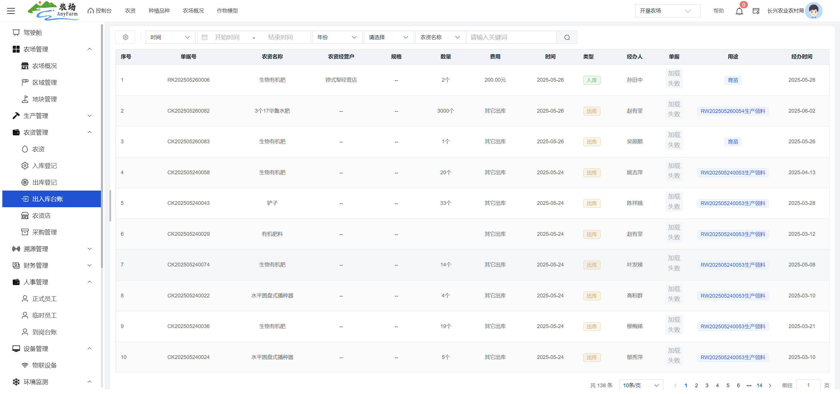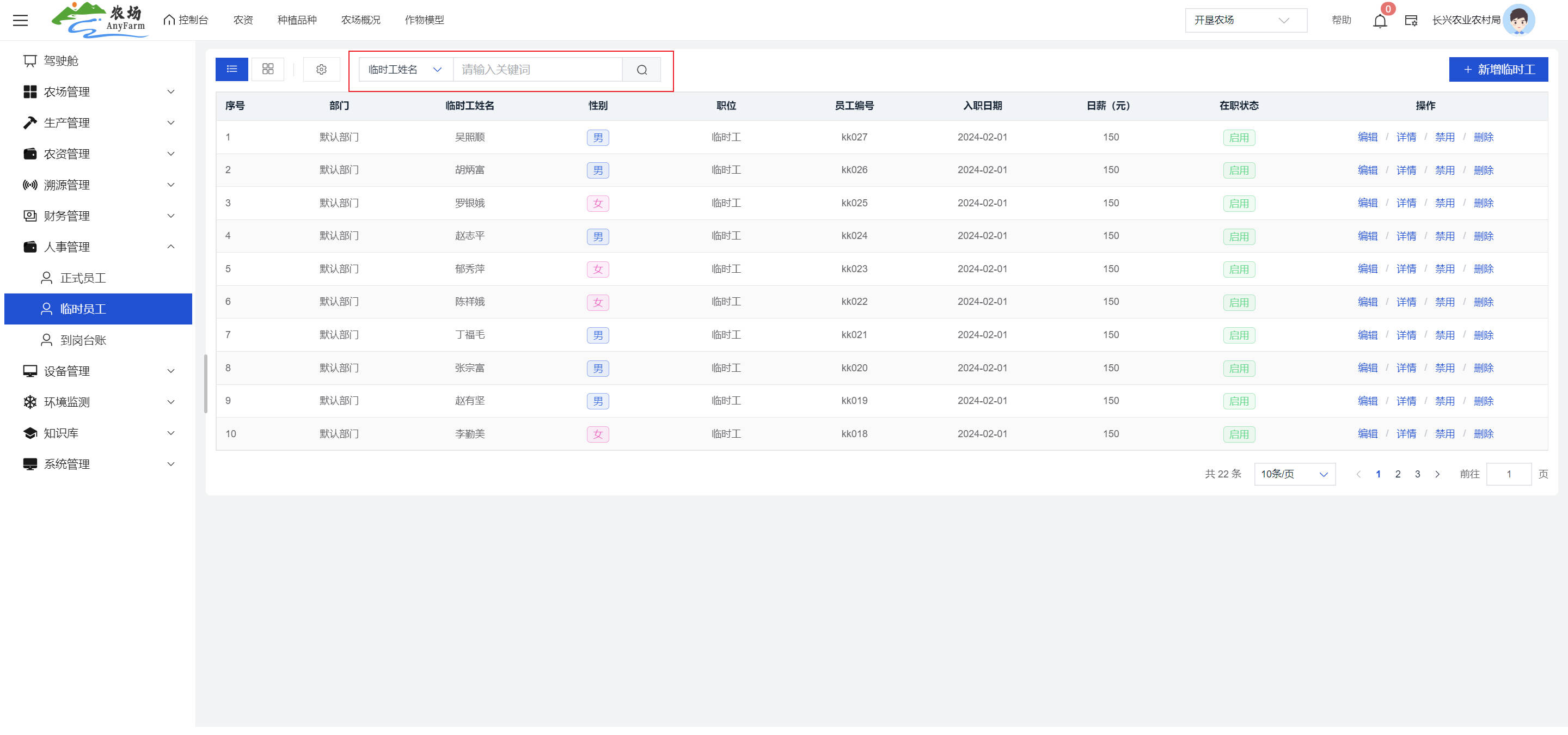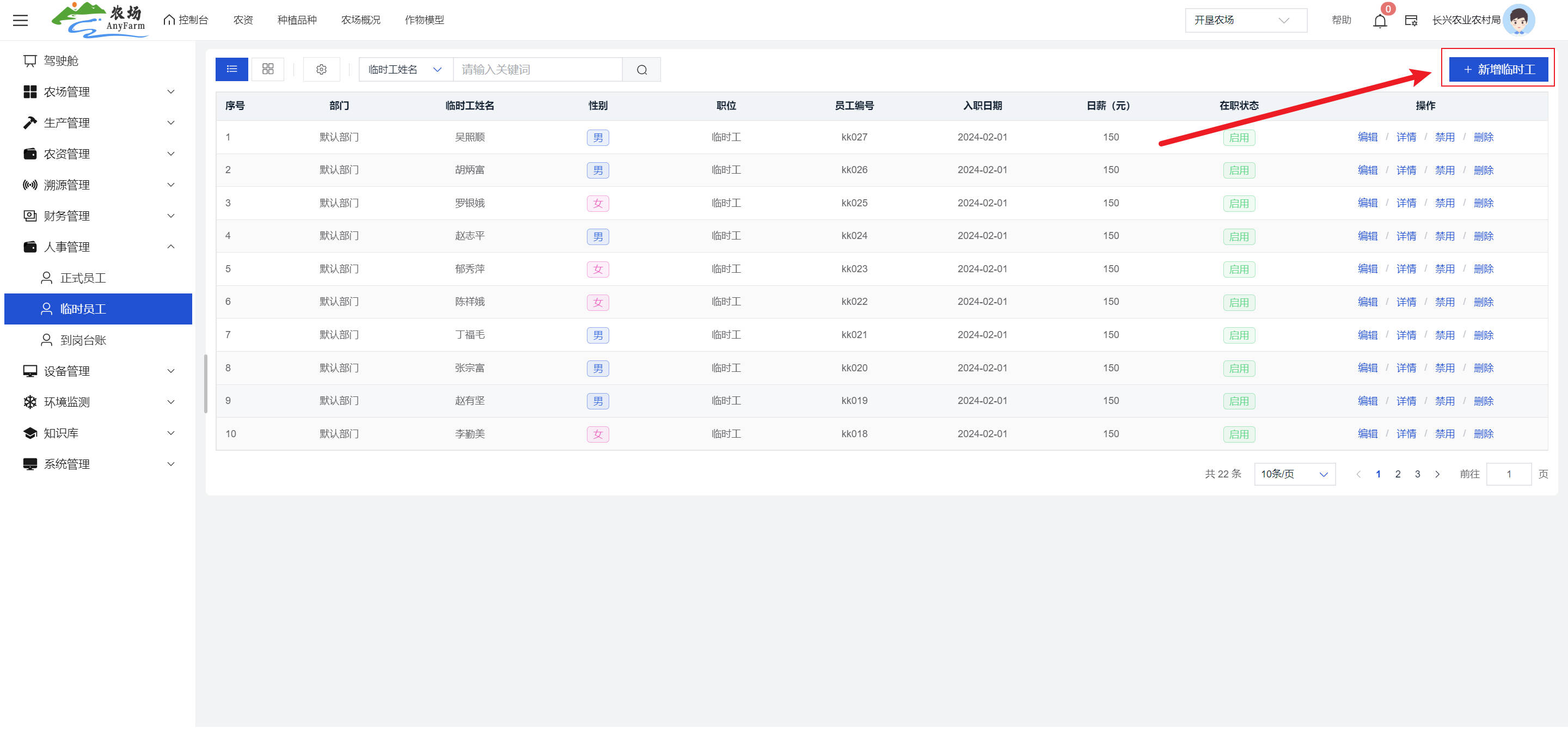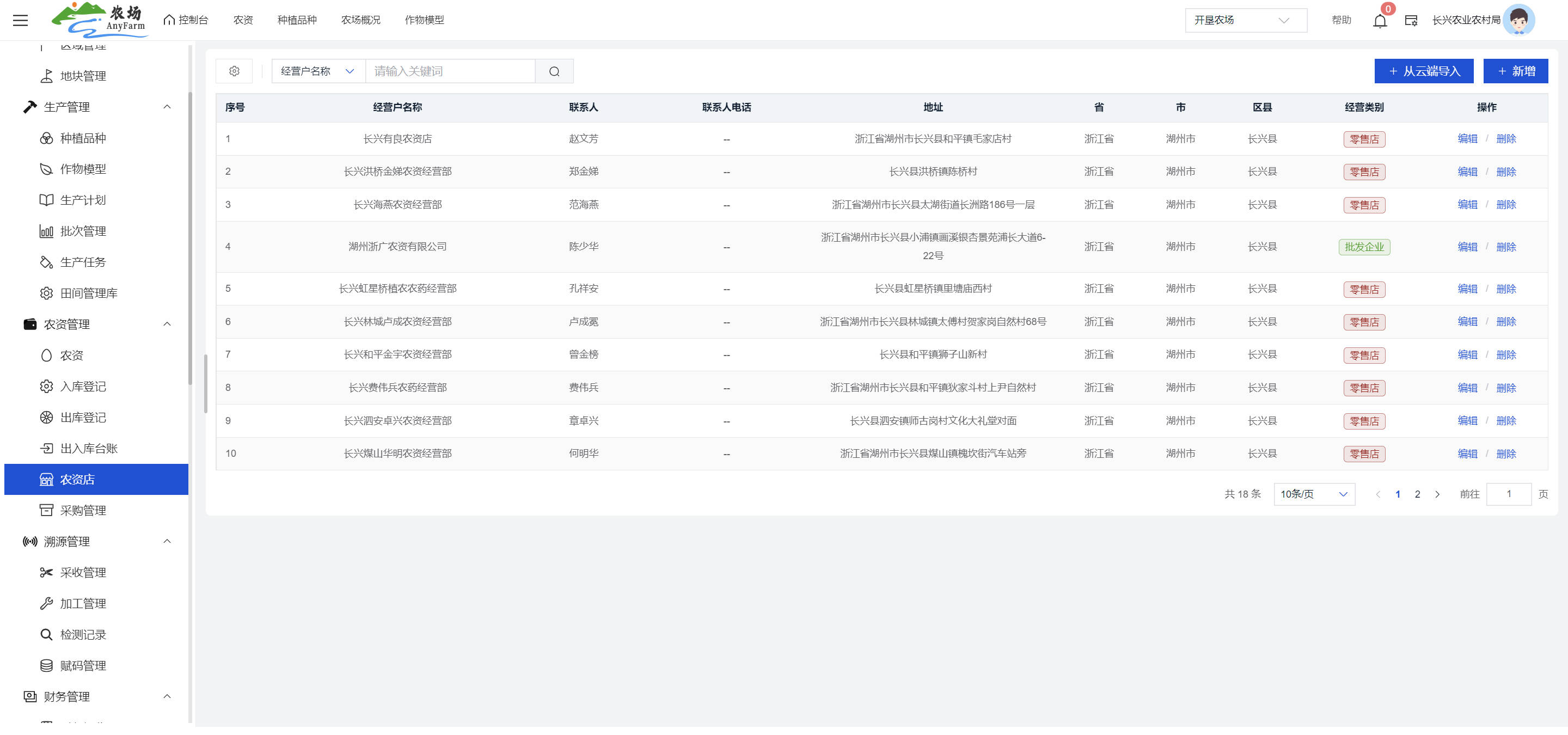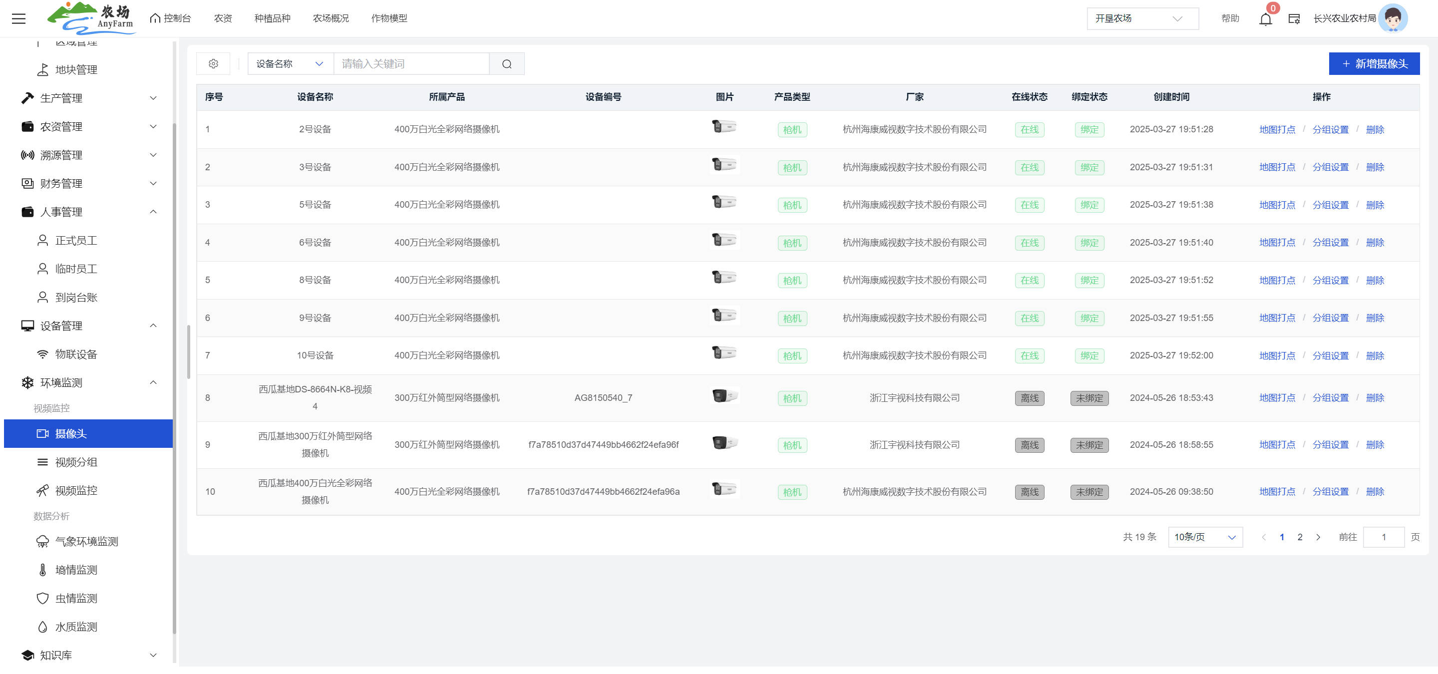 一、平台简介 AnyFarm农场管理平台是利用物联网、大数据、人工智能等现代信息技术,对农业生产进行全方位、全过程的智能化管理和控制。它通过传感器等设备,实时监测农田环境、作物生长、土壤墒情等信息,并通过数据分析和智能决策,实现精准灌溉、施肥、病虫害防治等操作,从而提高农业生产效率,降低资源消耗,保障农产品质量。 二、产品优势 1.全流程数据化管理,提升生产效率: * 优势: * 系统覆盖农场管理的各个环节,实现数据统一采集、存储和分析。 * 通过数据分析,优化生产计划,减少资源浪费,提高生产效率。 * 实时监测农场环境和生产状态,及时发现并解决问题。 * 体现: * 从农场基础信息录入,到生产计划制定,再到农产品溯源,全程数据化管理。 * 通过数据分析,实现精准施肥、精准灌溉等操作,提高资源利用率。 2. 智能化决策支持,降低生产风险: * 优势: * 利用机器学习模型,实现农产品质量预测、产量预测、病虫害预警等功能。 * 为农场管理者提供科学的决策依据,降低生产风险。 * 通过数据分析,预测市场行情,帮助农场及时调整生产策略。 * 体现: * 通过模型训练,预测农产品产量和质量,提前做好准备。 * 通过病虫害预警模型,及时发现并处理病虫害,减少损失。 3. 全程可追溯,保障农产品质量安全: * 优势: * 实现农产品从生产到销售的全程可追溯,保障产品质量安全。 * 消费者可以通过溯源码查询农产品生产信息,增强信任感。 * 提高农产品品牌价值,增强市场竞争力。 * 体现: * 记录农产品生产、加工、检测等信息,并与溯源码关联。 * 消费者可以通过手机扫描溯源码,了解农产品详细信息。 三、业务流程 流程说明: 1. 基础信息管理 * 农场管理: 对已添加的农场进行管理,包括信息修改、删除等操作。 * 员工管理: 录入和管理农场员工信息,包括姓名、工号、职位、联系方式等。 * 区域管理: 划分农场区域,如种植区、养殖区、办公区等,方便后续管理。 * 地块管理: 将农场区域进一步细分为地块,记录地块编号、面积、种植作物等信息。 * 设备管理: 录入和管理农场使用的各种设备,如灌溉设备、施肥设备、监测设备等。 * 计量单位: 设置系统中使用的计量单位,如面积单位、重量单位等。 * 指标库: 建立农产品质量、环境监测等相关指标库,为后续数据分析提供基础。 2. 生产管理 * 添加品种: 录入农场种植或养殖的品种信息,包括品种名称、特性、生长周期等。 * 品种管理: 对已添加的品种进行管理,包括信息修改、删除等操作。 * 添加农资: 录入农场使用的农资信息,如种子、肥料、农药等。 * 农资管理: 对已添加的农资进行管理,包括信息修改、删除等操作。 * 农资店: 如果农场有自己的农资店,则可以录入和管理农资店的信息。 * 农资出入库: 记录农资的出入库情况,实现农资库存管理。 * 生产计划: 制定农场的生产计划,包括种植或养殖时间、产量目标、农资使用计划等。 * 批次管理: 对农产品进行批次管理,记录批次信息、生产过程、质量检测等。 * 生产任务: 根据生产计划,生成具体的生产任务,分配给员工执行。 3. 溯源管理 * 采收管理: 记录农产品的采收情况,包括采收时间、产量、质量等。 * 加工管理: 如果农产品需要进行加工,则记录加工过程和相关信息。 * 检测记录: 记录农产品质量检测、环境监测等数据。 * 赋码管理: 对农产品进行赋码,实现产品溯源。 四、操作指南 4.1农场概况 界面功能概述: 该界面作为农场的首页及控制台界面,为用户呈现了农场的整体概况信息。在这里,用户能够清晰地查看到农场的数量、各个地块的数量、当前在职的员工人数、实时的天气状况等重要信息。同时,该界面还为用户提供了便捷的操作入口,例如可以进行农场的管理操作以及新增员工等常用功能,方便用户对农场的基本信息进行快速的了解和管理。  4.1.1.1 农场概况 界面功能概述: 用户可以点击标红的地方跳转到农场管理跳转到农场管理界面。  用户点击界面中标红的区域即可跳转到农场管理界面。在该界面中,用户可以全面了解农场的各项详细信息,如农场的占地面积、具体的种植区域划分、在职员工的数量及基本信息、各类设备的运行情况、今日和明日的农事安排等。这些信息的展示有助于用户对农场的整体运营状况有一个清晰的认识,同时也为后续的管理决策提供了有力的数据支持。此外,用户还可以在该界面进行一些基础的管理操作,如编辑农场的基本信息、调整设备的设置等,以确保农场的各项工作能够顺利进行。  4.1.1.2 农场农事 界面功能概述: 用户可以通过这里看到该农场的农事情况,例如施药、灌溉、施肥等常见的农事活动。  4.1.1.3 新增用户 界面元素功能概述: 该界面主要用于用户进行新增用户以及添加用户权限的操作。在农场的日常运营中,可能需要不断添加新的员工或管理人员,并为他们分配相应的权限,以便他们能够顺利地完成各自的工作任务。通过该界面,用户可以方便地完成这些操作,确保农场的人力资源管理更加高效和有序。  左侧搜索栏 :此搜索栏为用户提供了一个便捷的方式,允许用户在输入框内输入关键字,例如部门名称的关键词,从而快速搜索到特定的部门。这对于拥有多个部门的大型农场来说,能够大大提高用户查找部门的效率,节省时间。 顶部搜索栏:在这里,用户可以在输入框内