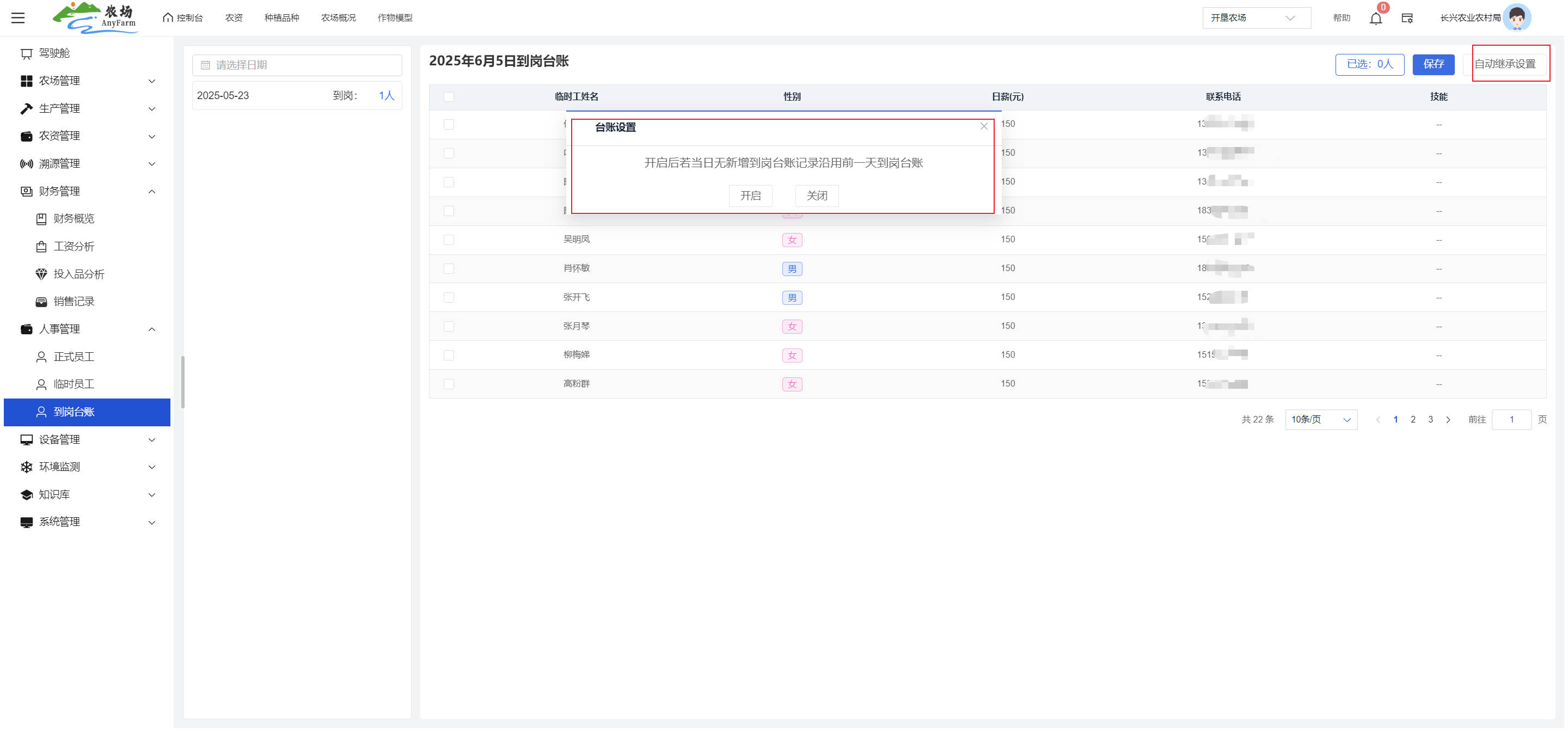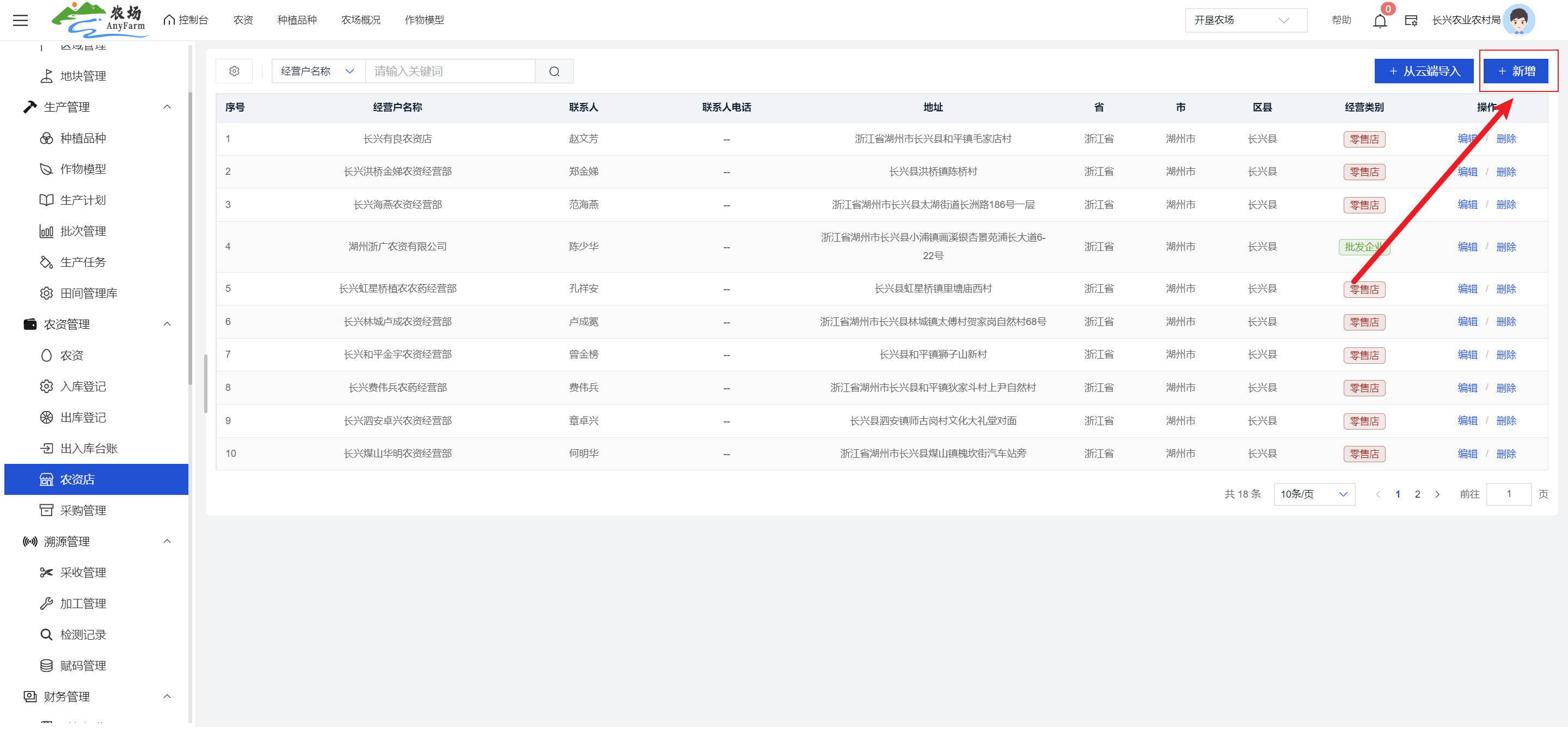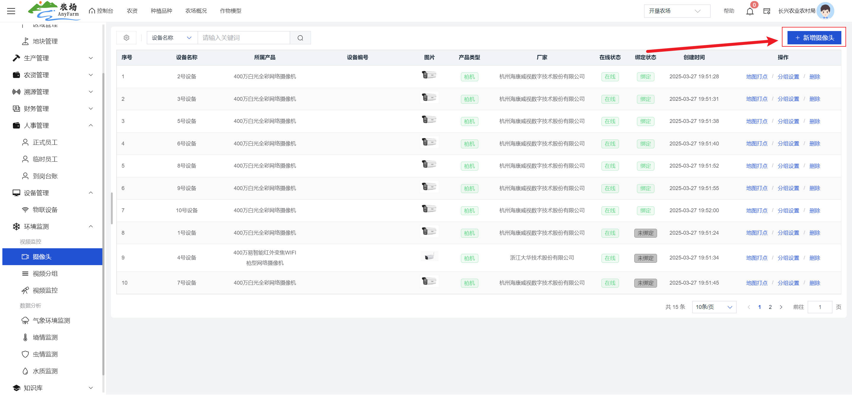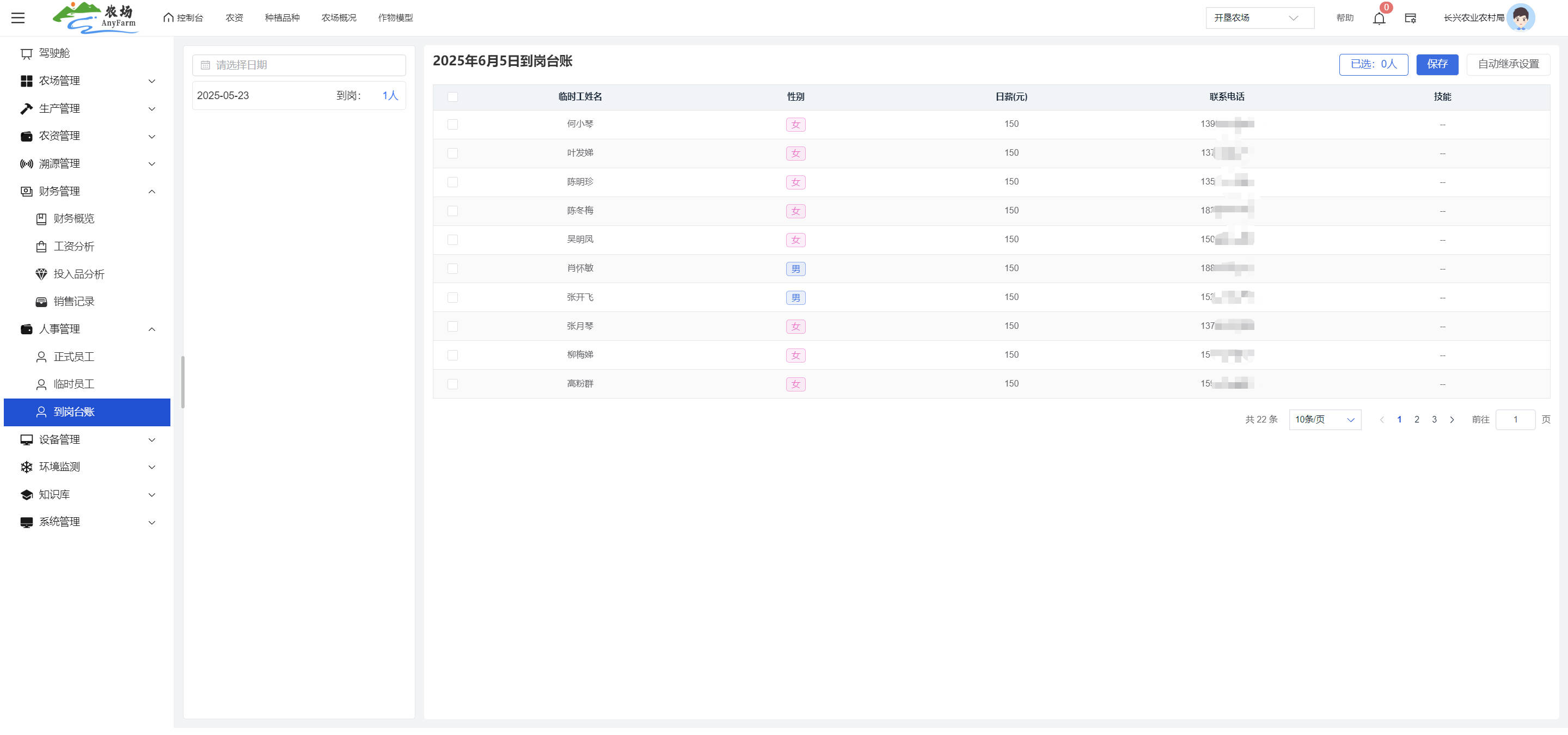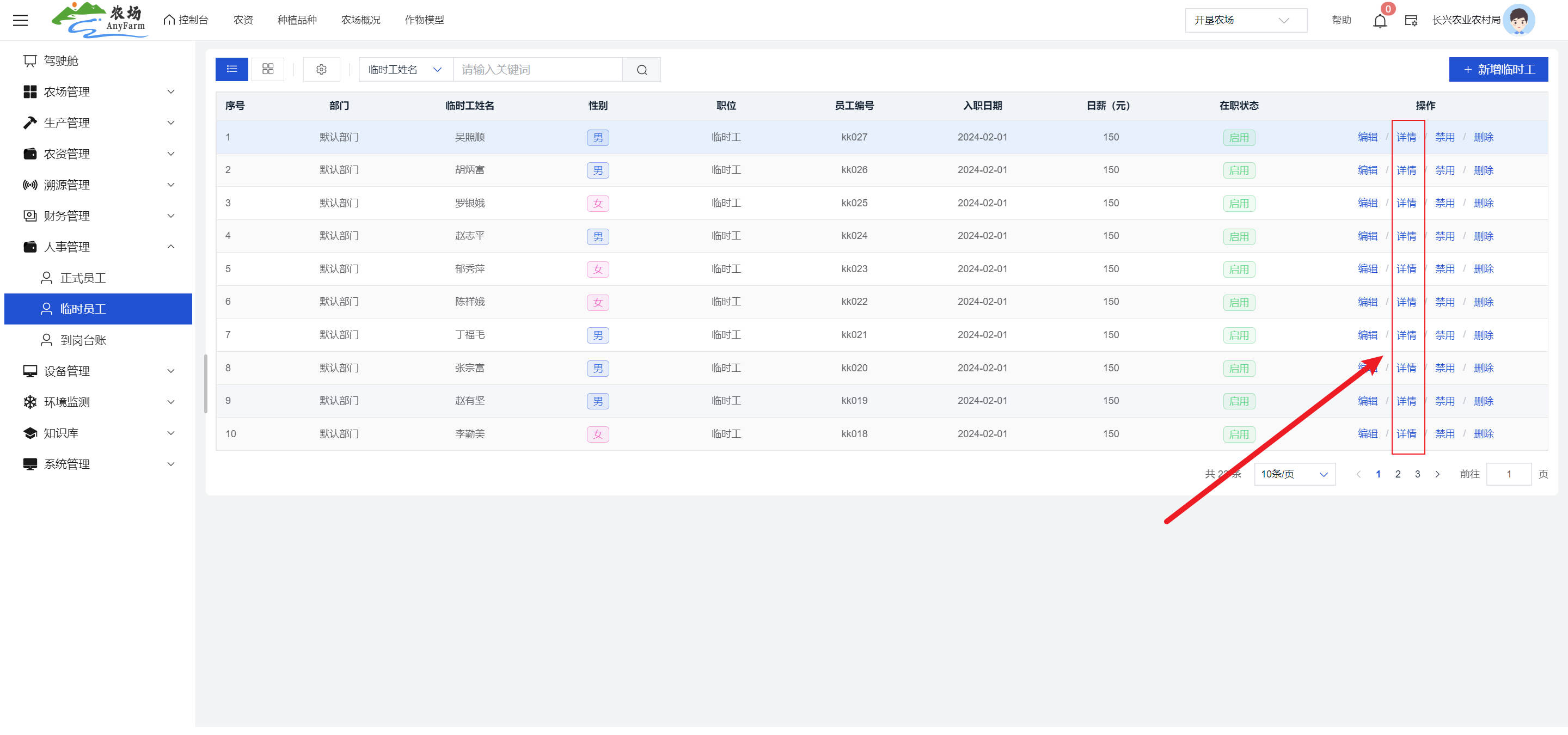 一、平台简介 AnyFarm农场管理平台是利用物联网、大数据、人工智能等现代信息技术,对农业生产进行全方位、全过程的智能化管理和控制。它通过传感器等设备,实时监测农田环境、作物生长、土壤墒情等信息,并通过数据分析和智能决策,实现精准灌溉、施肥、病虫害防治等操作,从而提高农业生产效率,降低资源消耗,保障农产品质量。 二、产品优势 1.全流程数据化管理,提升生产效率: * 优势: * 系统覆盖农场管理的各个环节,实现数据统一采集、存储和分析。 * 通过数据分析,优化生产计划,减少资源浪费,提高生产效率。 * 实时监测农场环境和生产状态,及时发现并解决问题。 * 体现: * 从农场基础信息录入,到生产计划制定,再到农产品溯源,全程数据化管理。 * 通过数据分析,实现精准施肥、精准灌溉等操作,提高资源利用率。 2. 智能化决策支持,降低生产风险: * 优势: * 利用机器学习模型,实现农产品质量预测、产量预测、病虫害预警等功能。 * 为农场管理者提供科学的决策依据,降低生产风险。 * 通过数据分析,预测市场行情,帮助农场及时调整生产策略。 * 体现: * 通过模型训练,预测农产品产量和质量,提前做好准备。 * 通过病虫害预警模型,及时发现并处理病虫害,减少损失。 3. 全程可追溯,保障农产品质量安全: * 优势: * 实现农产品从生产到销售的全程可追溯,保障产品质量安全。 * 消费者可以通过溯源码查询农产品生产信息,增强信任感。 * 提高农产品品牌价值,增强市场竞争力。 * 体现: * 记录农产品生产、加工、检测等信息,并与溯源码关联。 * 消费者可以通过手机扫描溯源码,了解农产品详细信息。 三、业务流程 流程说明: 1. 基础信息管理 * 农场管理: 对已添加的农场进行管理,包括信息修改、删除等操作。 * 员工管理: 录入和管理农场员工信息,包括姓名、工号、职位、联系方式等。 * 区域管理: 划分农场区域,如种植区、养殖区、办公区等,方便后续管理。 * 地块管理: 将农场区域进一步细分为地块,记录地块编号、面积、种植作物等信息。 * 设备管理: 录入和管理农场使用的各种设备,如灌溉设备、施肥设备、监测设备等。 * 计量单位: 设置系统中使用的计量单位,如面积单位、重量单位等。 * 指标库: 建立农产品质量、环境监测等相关指标库,为后续数据分析提供基础。 2. 生产管理 * 添加品种: 录入农场种植或养殖的品种信息,包括品种名称、特性、生长周期等。 * 品种管理: 对已添加的品种进行管理,包括信息修改、删除等操作。 * 添加农资: 录入农场使用的农资信息,如种子、肥料、农药等。 * 农资管理: 对已添加的农资进行管理,包括信息修改、删除等操作。 * 农资店: 如果农场有自己的农资店,则可以录入和管理农资店的信息。 * 农资出入库: 记录农资的出入库情况,实现农资库存管理。 * 生产计划: 制定农场的生产计划,包括种植或养殖时间、产量目标、农资使用计划等。 * 批次管理: 对农产品进行批次管理,记录批次信息、生产过程、质量检测等。 * 生产任务: 根据生产计划,生成具体的生产任务,分配给员工执行。 3. 溯源管理 * 采收管理: 记录农产品的采收情况,包括采收时间、产量、质量等。 * 加工管理: 如果农产品需要进行加工,则记录加工过程和相关信息。 * 检测记录: 记录农产品质量检测、环境监测等数据。 * 赋码管理: 对农产品进行赋码,实现产品溯源。 四、操作指南 4.1农场概况 界面功能概述: 该界面作为农场的首页及控制台界面,为用户呈现了农场的整体概况信息。在这里,用户能够清晰地查看到农场的数量、各个地块的数量、当前在职的员工人数、实时的天气状况等重要信息。同时,该界面还为用户提供了便捷的操作入口,例如可以进行农场的管理操作以及新增员工等常用功能,方便用户对农场的基本信息进行快速的了解和管理。  4.1.1.1 农场概况 界面功能概述: 用户可以点击标红的地方跳转到农场管理跳转到农场管理界面。  用户点击界面中标红的区域即可跳转到农场管理界面。在该界面中,用户可以全面了解农场的各项详细信息,如农场的占地面积、具体的种植区域划分、在职员工的数量及基本信息、各类设备的运行情况、今日和明日的农事安排等。这些信息的展示有助于用户对农场的整体运营状况有一个清晰的认识,同时也为后续的管理决策提供了有力的数据支持。此外,用户还可以在该界面进行一些基础的管理操作,如编辑农场的基本信息、调整设备的设置等,以确保农场的各项工作能够顺利进行。  4.1.1.2 农场农事 界面功能概述: 用户可以通过这里看到该农场的农事情况,例如施药、灌溉、施肥等常见的农事活动。  4.1.1.3 新增用户 界面元素功能概述: 该界面主要用于用户进行新增用户以及添加用户权限的操作。在农场的日常运营中,可能需要不断添加新的员工或管理人员,并为他们分配相应的权限,以便他们能够顺利地完成各自的工作任务。通过该界面,用户可以方便地完成这些操作,确保农场的人力资源管理更加高效和有序。  左侧搜索栏 :此搜索栏为用户提供了一个便捷的方式,允许用户在输入框内输入关键字,例如部门名称的关键词,从而快速搜索到特定的部门。这对于拥有多个部门的大型农场来说,能够大大提高用户查找部门的效率,节省时间。 顶部搜索栏:在这里,用户可以在输入框内