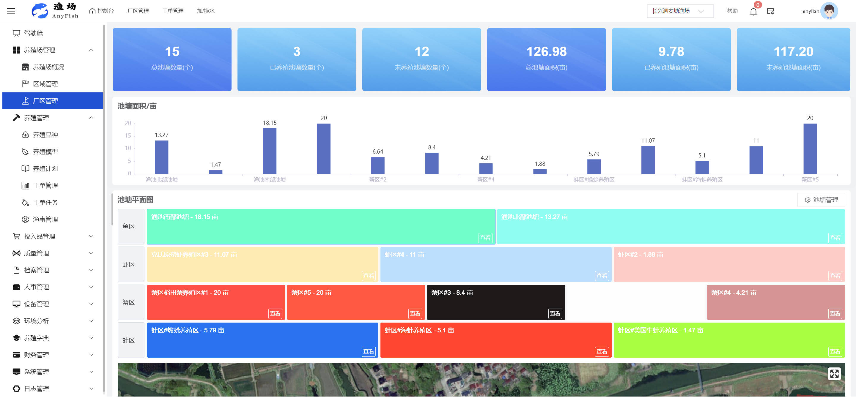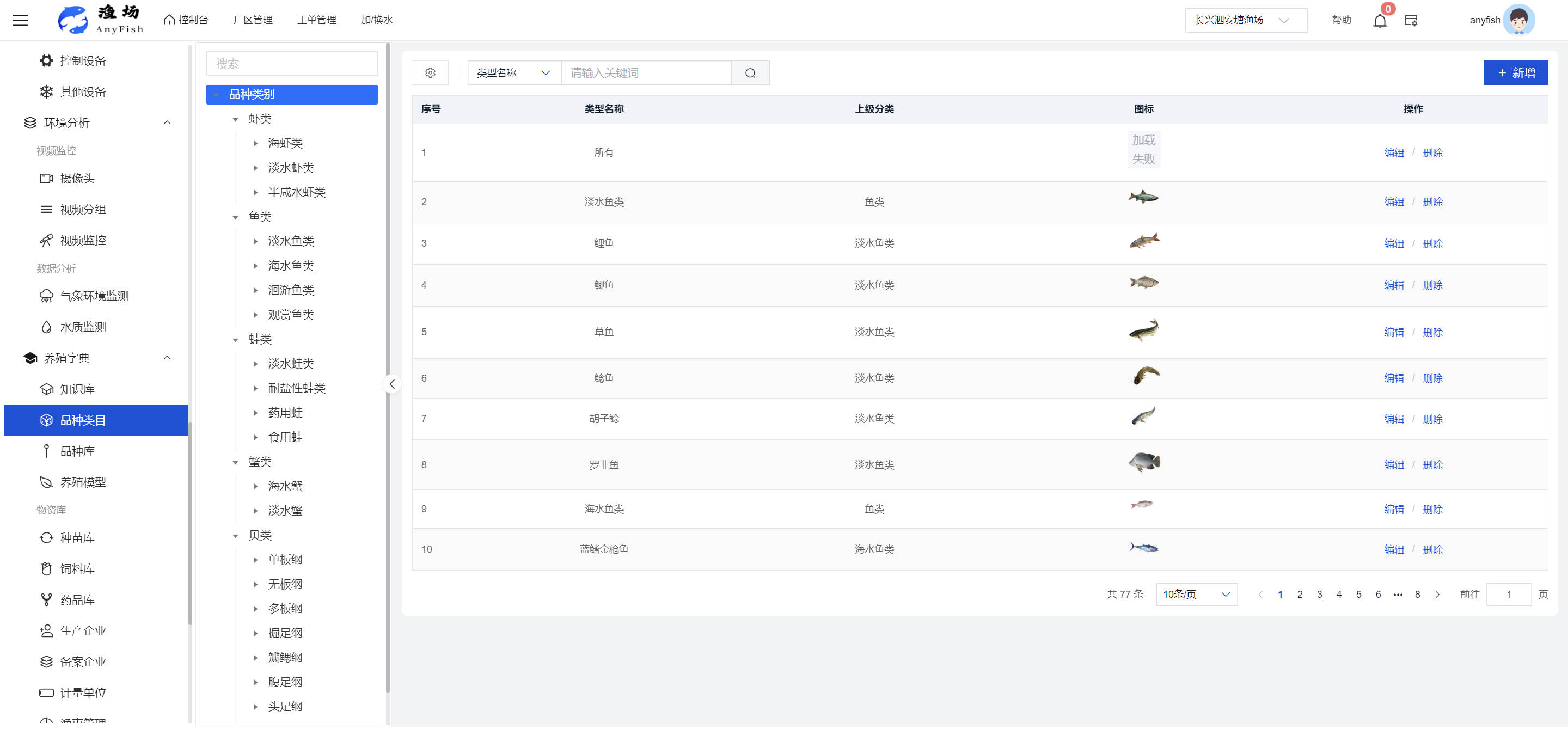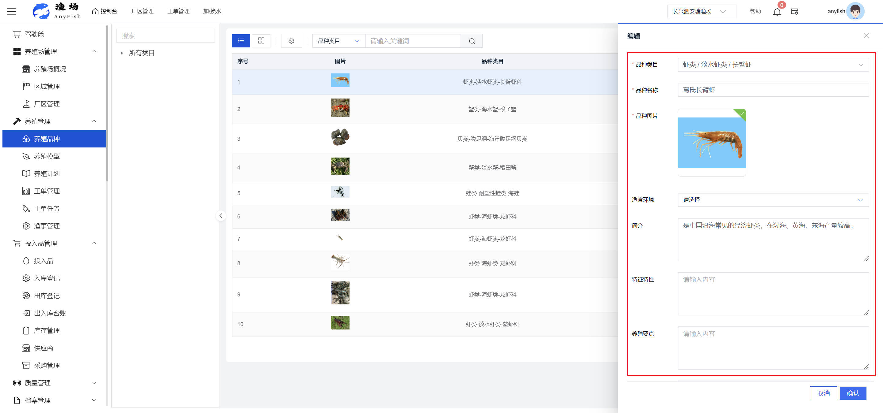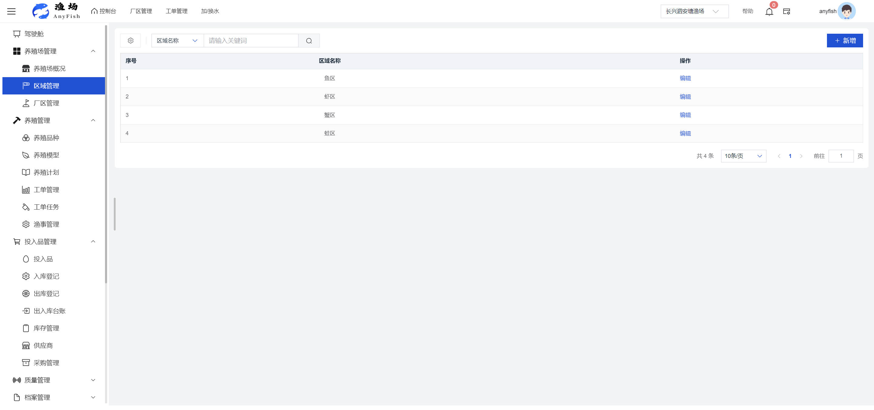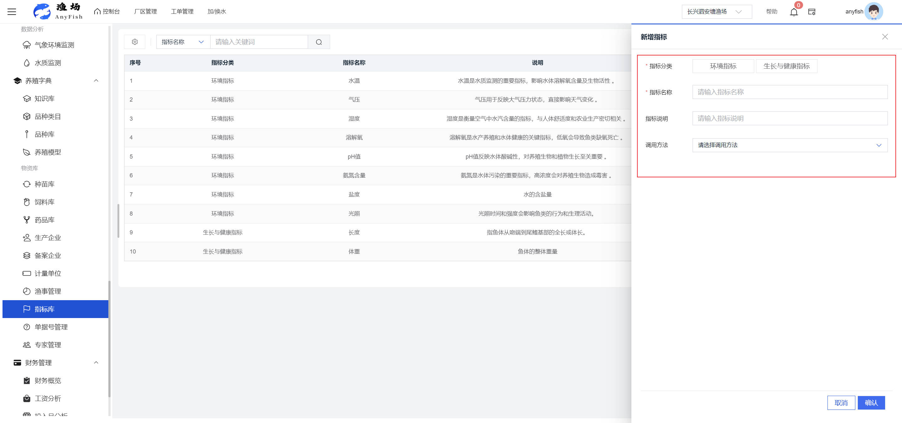 一、操作指南 1.1渔场概况 界面功能概述: 该界面作为渔场的首页及控制台界面,为用户呈现了渔场的整体概况信息。在这里,用户能够清晰地查看到渔场的数量、各个厂区的数量、当前在职的员工人数、实时的天气状况、已安装的摄像头设备数量以及是否存在离线设备等重要信息。同时,该界面还为用户提供了便捷的操作入口,例如可以进行渔场的管理操作以及新增员工等常用功能,方便用户对渔场的基本信息进行快速的了解和管理。  4.1.1.1 渔场概况 界面功能概述: 用户可以点击标红的地方跳转到渔场管理跳转到渔场管理界面。  用户点击界面中标红的区域即可跳转到渔场管理界面。在该界面中,用户可以全面了解渔场的各项详细信息,如渔场的占地面积、具体的养殖区域划分、在职员工的数量及基本信息、各类设备的运行情况、今日和明日的农事安排等。这些信息的展示有助于用户对渔场的整体运营状况有一个清晰的认识,同时也为后续的管理决策提供了有力的数据支持。此外,用户还可以在该界面进行一些基础的管理操作,如编辑渔场的基本信息、调整设备的设置等,以确保渔场的各项工作能够顺利进行。  4.1.1.2 渔场渔事 界面功能概述: 用户可以通过点击界面中标红的区域进入不同的渔事管理模块,例如培肥、投饵、收捕等常见的农事活动。  4.1.1.3 新增用户 界面元素功能概述: 该界面主要用于用户进行新增用户以及添加用户权限的操作。在渔场的日常运营中,可能需要不断添加新的员工或管理人员,并为他们分配相应的权限,以便他们能够顺利地完成各自的工作任务。通过该界面,用户可以方便地完成这些操作,确保渔场的人力资源管理更加高效和有序。  左侧搜索栏 :此搜索栏为用户提供了一个便捷的方式,允许用户在输入框内输入关键字,例如部门名称的关键词,从而快速搜索到特定的部门。这对于拥有多个部门的大型渔场来说,能够大大提高用户查找部门的效率,节省时间。 顶部搜索栏:在这里,用户可以在输入框内填写用户名称或关键词,以便快速搜索到特定的用户。当渔场员工数量较多时,通过关键词搜索能够迅速定位到目标用户,进而对其信息进行相应的操作,如查看、编辑或删除等。  新增用户按钮:点击该按钮后,系统会弹出一个新增用户的表单界面。  用户需要在该表单中填写完整的信息,包括但不限于用户名、密码、姓名、联系方式、所属部门、角色权限等。填写完成后,点击保存按钮,即可将新的用户成功添加到系统当中,使其能够登录并使用系统进行相关的工作操作。  编辑用户按钮:当用户需要修改员工的信息时,可以点击该按钮。  系统会跳转到员工信息编辑界面,在这里,用户可以对员工的基本信息、联系方式、角色权限等进行修改。修改完成后,点击保存按钮,即可使修改后的信息生效,确保员工的信息始终保持准确和更新。  删除按钮:如果需要删除某个员工账号,用户可以点击该删除按钮。系统会弹出一个确认对话框,提示用户是否确定要删除该员工。如果用户点击“是”,则系统将彻底删除该员工账号及其相关信息;如果用户点击“否”,则取消删除操作,员工账号保持不变。在删除员工账号时,用户需要谨慎操作,以免误删重要信息。  修改密码按钮:为了保障系统的安全性,用户可以通过点击该按钮来修改员工的密码。  在修改密码的界面中,用户需要输入新的密码并确认,然后点击保存按钮,即可完成密码的修改。修改后的密码将立即生效,员工需要使用新密码进行登录。这一功能在员工忘记密码或需要定期更新密码的情况下非常实用。  4.1.1.4 告警信息 界面功能概述: 该界面是一个渔场概况列表,主要展示渔场的基本情况以及各类告警信息。用户可以通过该界面查看渔场的详细信息,如渔场名称、位置、占地面积、当前的渔事活动等。  同时,系统会将各类告警信息以醒目的方式展示出来,包括设备故障告警、环境异常告警(如温度过高、湿度过低等)、渔事任务超时告警等。用户可以点击相应的告警信息,查看更多详细的告警内容,如告警发生的时间、具体的设备或区域、告警的严重程度等。此外,用户还可以在该界面进行一些相关的操作,如确认告警信息、查看告警处理进度、设置告警提醒方式等,以便及时处理各类问题,确保渔场的正常运营。  4.2渔场管理 4.2.1.渔场管理 摄像头管理 :用户可以在该界面中对摄像头进行添加、删除、调整位置等操作。通过合理配置摄像头,用户可以实现对渔场各个区域的实时监控,便于及时发现异常情况,保障渔场的安全。  4.2.2 厂区管理 界面功能概述 该界面是一个池塘列表,主要用于查看池塘的详细信息,包括池塘的占地面积、养殖模型、养殖面积、生长周期等。用户可以通过该界面全面了解各个池塘的基本情况,为养殖规划和渔事安排提供重要依据。同时,该界面还为用户提供了多种操作功能,如池塘管理操作、查看池塘详细信息等,方便用户对地块进行有效的管理和维护。  4.2.2.1 池塘管理:  添加旁边的搜索框(与添加按钮分开) :该搜索框允许用户输入关键词,如池塘名称、投入品名称或相关信息,进行快速搜索。通过输入关键词,系统将自动筛选出符合条件的池塘信息,方便用户在众多地块中快速找到目标池塘,提高工作效率。 添加按钮 :用户可以在右侧输入要添加的池塘信息,