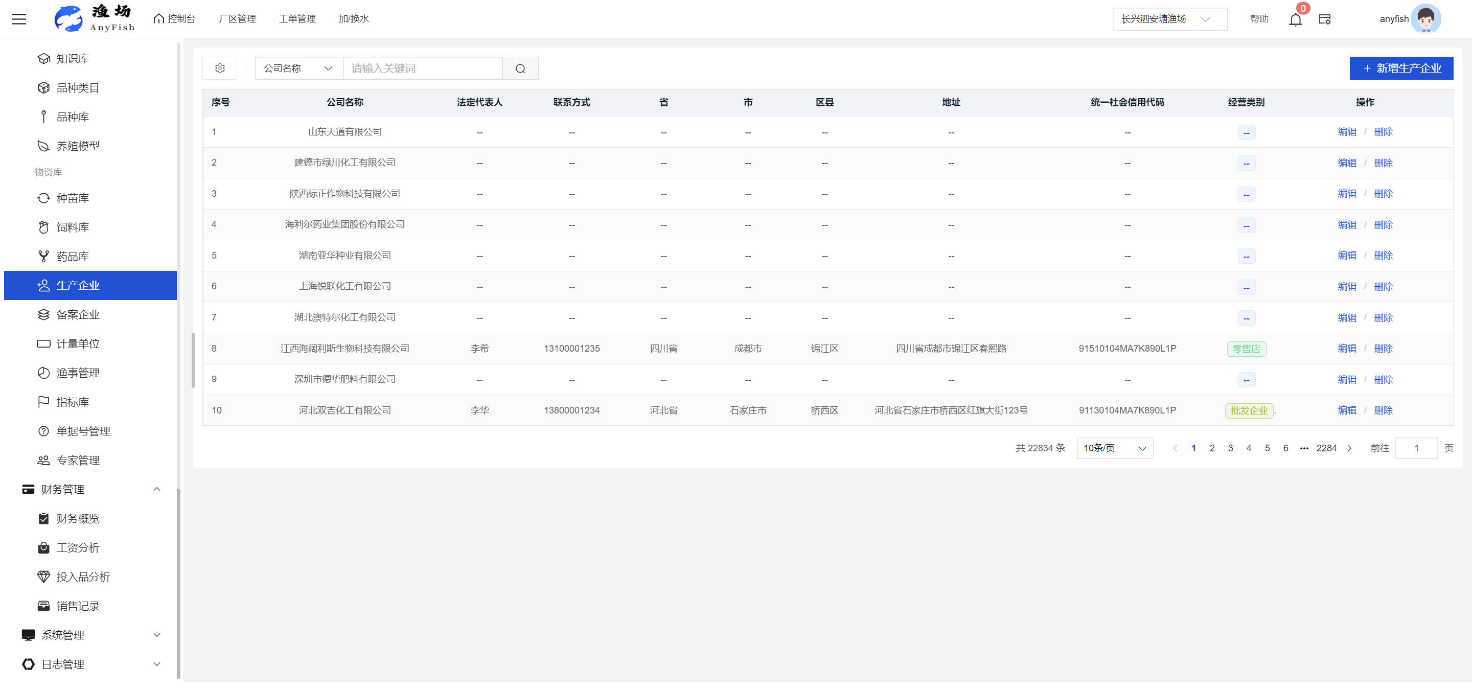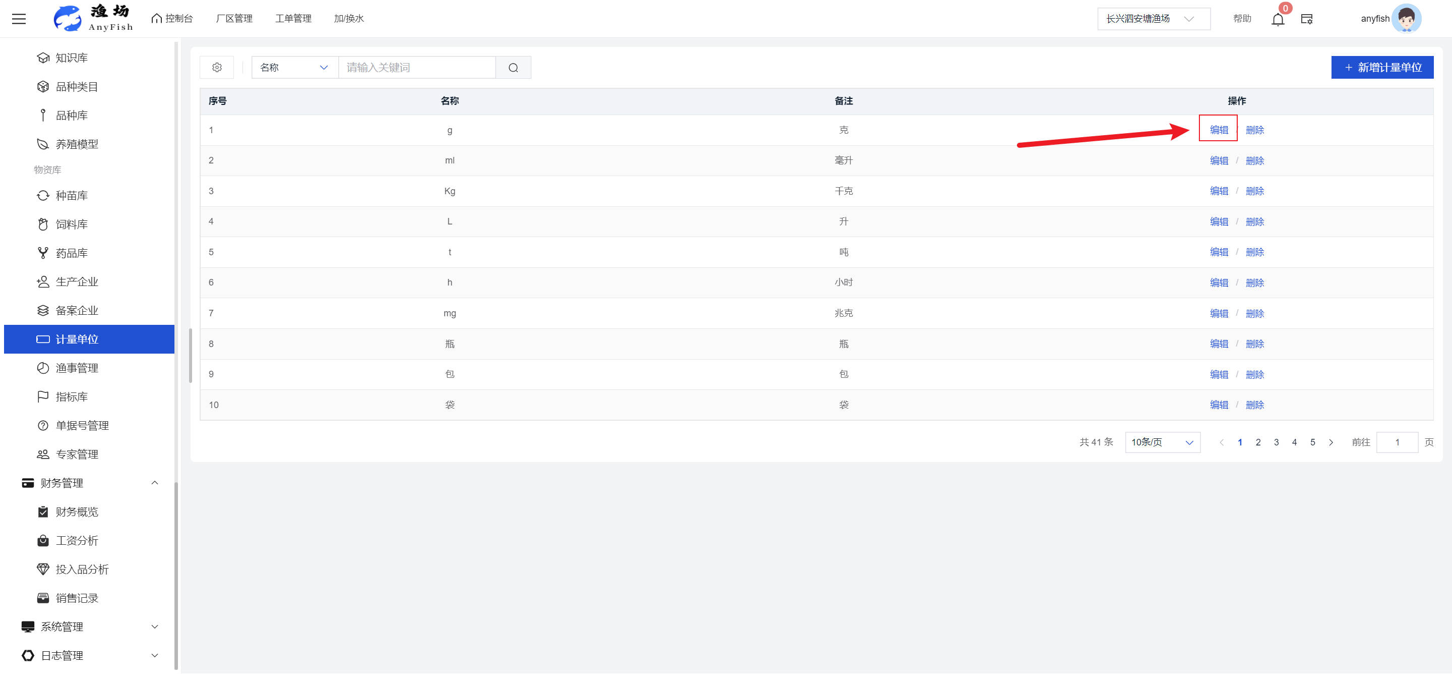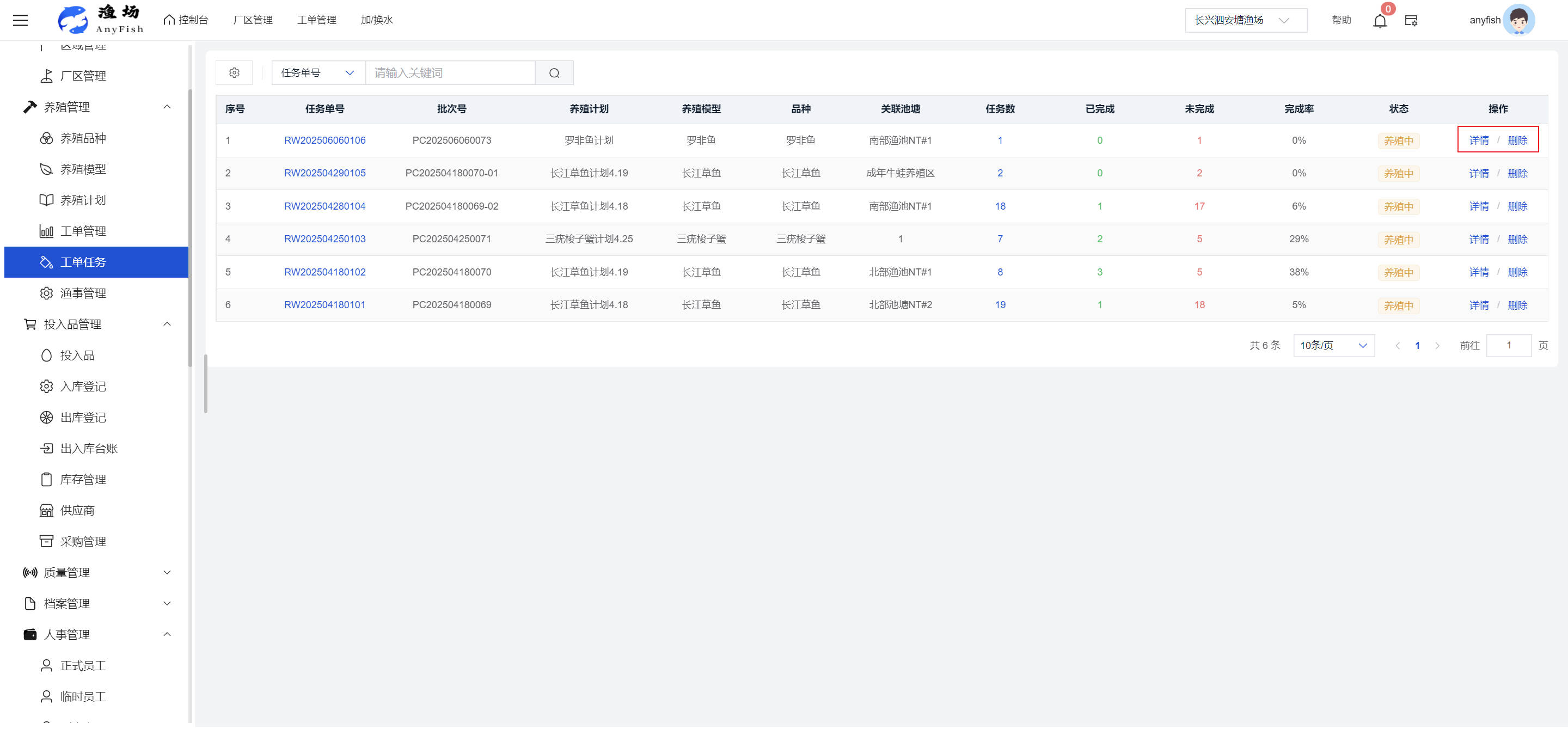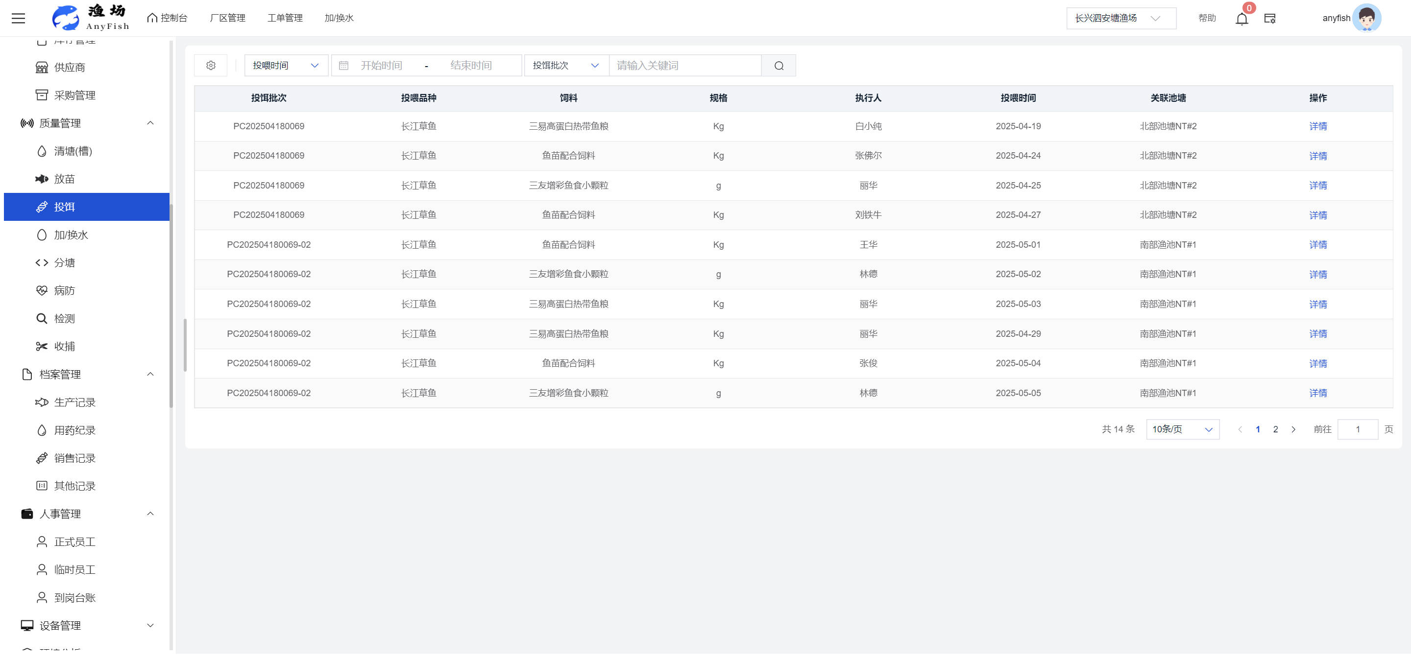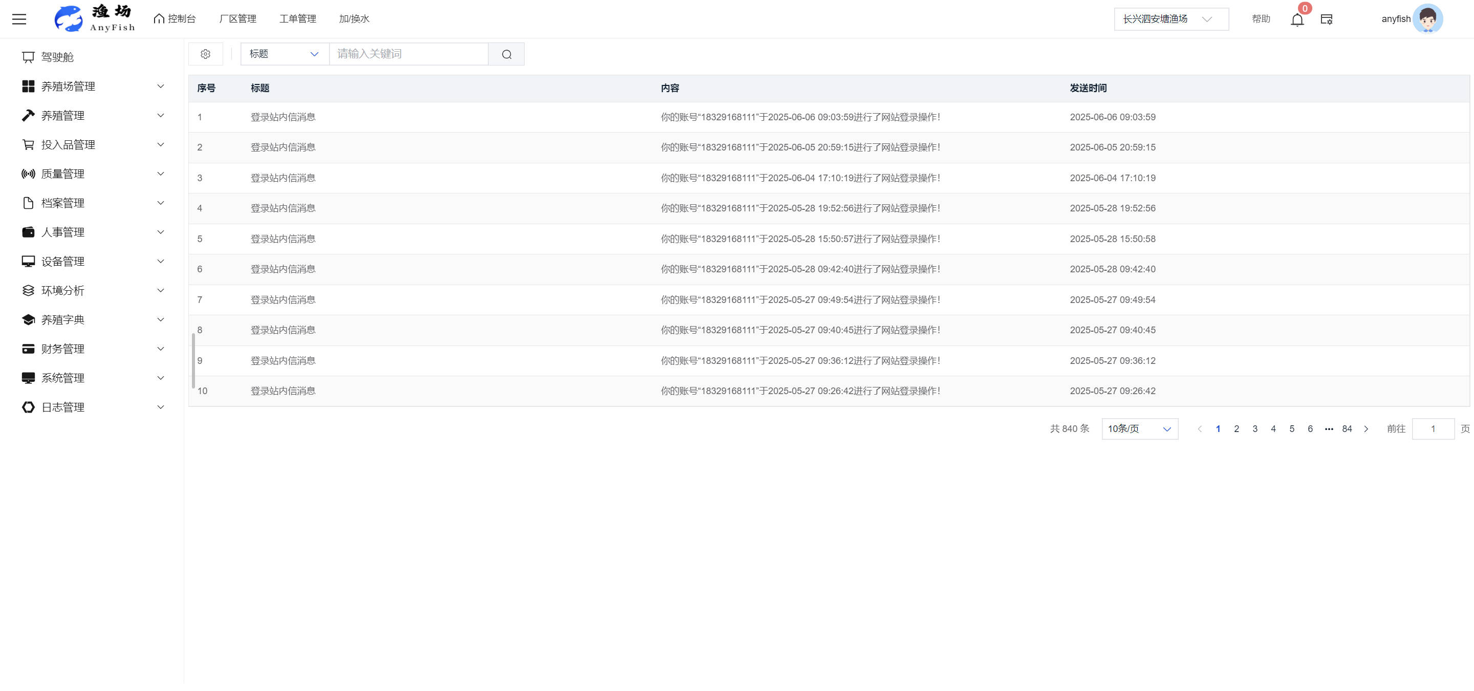 一、操作指南 1.1渔场概况 界面功能概述: 该界面作为渔场的首页及控制台界面,为用户呈现了渔场的整体概况信息。在这里,用户能够清晰地查看到渔场的数量、各个厂区的数量、当前在职的员工人数、实时的天气状况、已安装的摄像头设备数量以及是否存在离线设备等重要信息。同时,该界面还为用户提供了便捷的操作入口,例如可以进行渔场的管理操作以及新增员工等常用功能,方便用户对渔场的基本信息进行快速的了解和管理。  4.1.1.1 渔场概况 界面功能概述: 用户可以点击标红的地方跳转到渔场管理跳转到渔场管理界面。  用户点击界面中标红的区域即可跳转到渔场管理界面。在该界面中,用户可以全面了解渔场的各项详细信息,如渔场的占地面积、具体的养殖区域划分、在职员工的数量及基本信息、各类设备的运行情况、今日和明日的农事安排等。这些信息的展示有助于用户对渔场的整体运营状况有一个清晰的认识,同时也为后续的管理决策提供了有力的数据支持。此外,用户还可以在该界面进行一些基础的管理操作,如编辑渔场的基本信息、调整设备的设置等,以确保渔场的各项工作能够顺利进行。  4.1.1.2 渔场渔事 界面功能概述: 用户可以通过点击界面中标红的区域进入不同的渔事管理模块,例如培肥、投饵、收捕等常见的农事活动。  4.1.1.3 新增用户 界面元素功能概述: 该界面主要用于用户进行新增用户以及添加用户权限的操作。在渔场的日常运营中,可能需要不断添加新的员工或管理人员,并为他们分配相应的权限,以便他们能够顺利地完成各自的工作任务。通过该界面,用户可以方便地完成这些操作,确保渔场的人力资源管理更加高效和有序。  左侧搜索栏 :此搜索栏为用户提供了一个便捷的方式,允许用户在输入框内输入关键字,例如部门名称的关键词,从而快速搜索到特定的部门。这对于拥有多个部门的大型渔场来说,能够大大提高用户查找部门的效率,节省时间。 顶部搜索栏:在这里,用户可以在输入框内填写用户名称或关键词,以便快速搜索到特定的用户。当渔场员工数量较多时,通过关键词搜索能够迅速定位到目标用户,进而对其信息进行相应的操作,如查看、编辑或删除等。  新增用户按钮:点击该按钮后,系统会弹出一个新增用户的表单界面。  用户需要在该表单中填写完整的信息,包括但不限于用户名、密码、姓名、联系方式、所属部门、角色权限等。填写完成后,点击保存按钮,即可将新的用户成功添加到系统当中,使其能够登录并使用系统进行相关的工作操作。  编辑用户按钮:当用户需要修改员工的信息时,可以点击该按钮。  系统会跳转到员工信息编辑界面,在这里,用户可以对员工的基本信息、联系方式、角色权限等进行修改。修改完成后,点击保存按钮,即可使修改后的信息生效,确保员工的信息始终保持准确和更新。  删除按钮:如果需要删除某个员工账号,用户可以点击该删除按钮。系统会弹出一个确认对话框,提示用户是否确定要删除该员工。如果用户点击“是”,则系统将彻底删除该员工账号及其相关信息;如果用户点击“否”,则取消删除操作,员工账号保持不变。在删除员工账号时,用户需要谨慎操作,以免误删重要信息。  修改密码按钮:为了保障系统的安全性,用户可以通过点击该按钮来修改员工的密码。  在修改密码的界面中,用户需要输入新的密码并确认,然后点击保存按钮,即可完成密码的修改。修改后的密码将立即生效,员工需要使用新密码进行登录。这一功能在员工忘记密码或需要定期更新密码的情况下非常实用。  4.1.1.4 告警信息 界面功能概述: 该界面是一个渔场概况列表,主要展示渔场的基本情况以及各类告警信息。用户可以通过该界面查看渔场的详细信息,如渔场名称、位置、占地面积、当前的渔事活动等。  同时,系统会将各类告警信息以醒目的方式展示出来,包括设备故障告警、环境异常告警(如温度过高、湿度过低等)、渔事任务超时告警等。用户可以点击相应的告警信息,查看更多详细的告警内容,如告警发生的时间、具体的设备或区域、告警的严重程度等。此外,用户还可以在该界面进行一些相关的操作,如确认告警信息、查看告警处理进度、设置告警提醒方式等,以便及时处理各类问题,确保渔场的正常运营。  4.2渔场管理 4.2.1.渔场管理 摄像头管理 :用户可以在该界面中对摄像头进行添加、删除、调整位置等操作。通过合理配置摄像头,用户可以实现对渔场各个区域的实时监控,便于及时发现异常情况,保障渔场的安全。  4.2.2 厂区管理 界面功能概述 该界面是一个池塘列表,主要用于查看池塘的详细信息,包括池塘的占地面积、养殖模型、养殖面积、生长周期等。用户可以通过该界面全面了解各个池塘的基本情况,为养殖规划和渔事安排提供重要依据。同时,该界面还为用户提供了多种操作功能,如池塘管理操作、查看池塘详细信息等,方便用户对地块进行有效的管理和维护。  4.2.2.1 池塘管理:  添加旁边的搜索框(与添加按钮分开) :该搜索框允许用户输入关键词,如池塘名称、投入品名称或相关信息,进行快速搜索。通过输入关键词,系统将自动筛选出符合条件的池塘信息,方便用户在众多地块中快速找到目标池塘,提高工作效率。 添加按钮 :用户可以在右侧输入要添加的池塘信息,