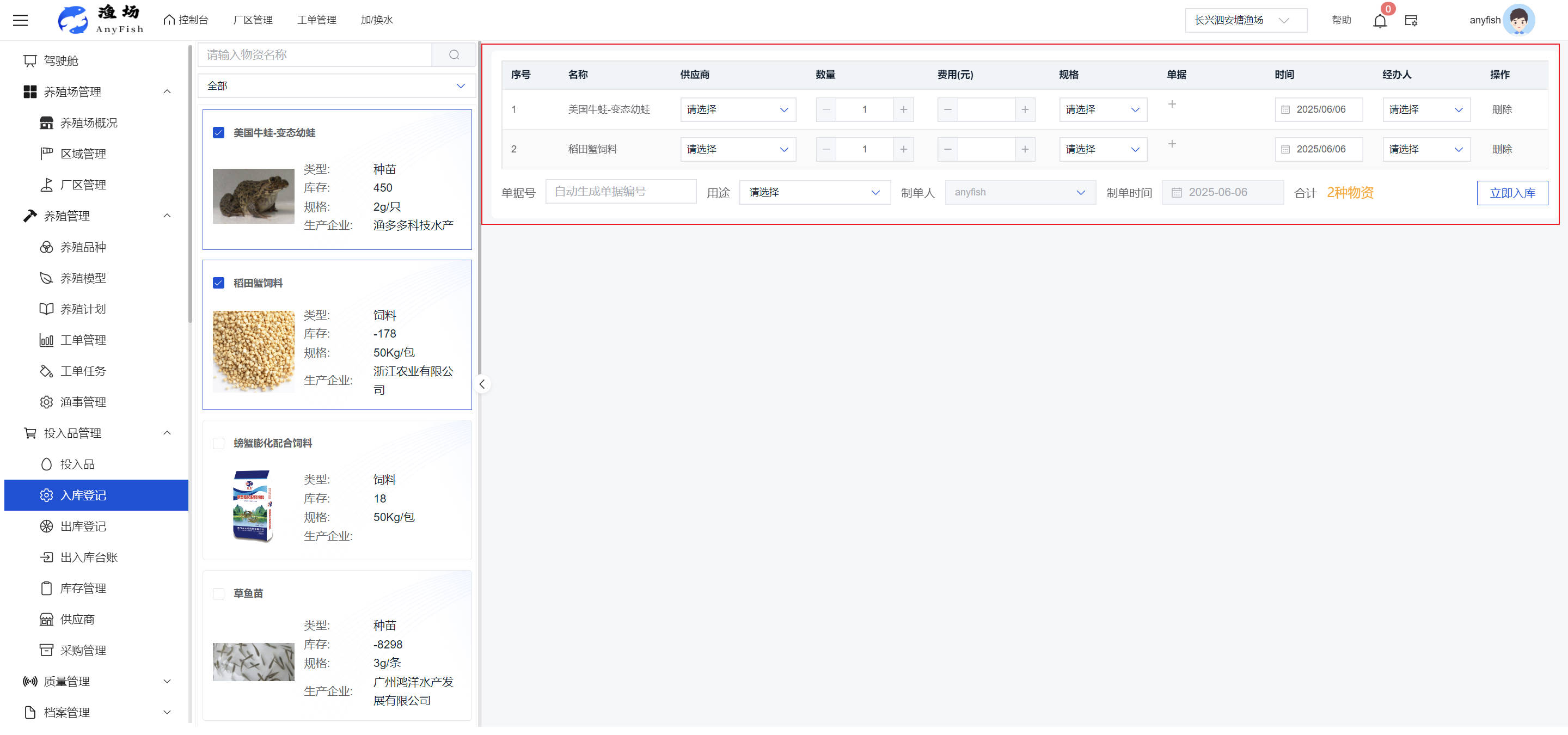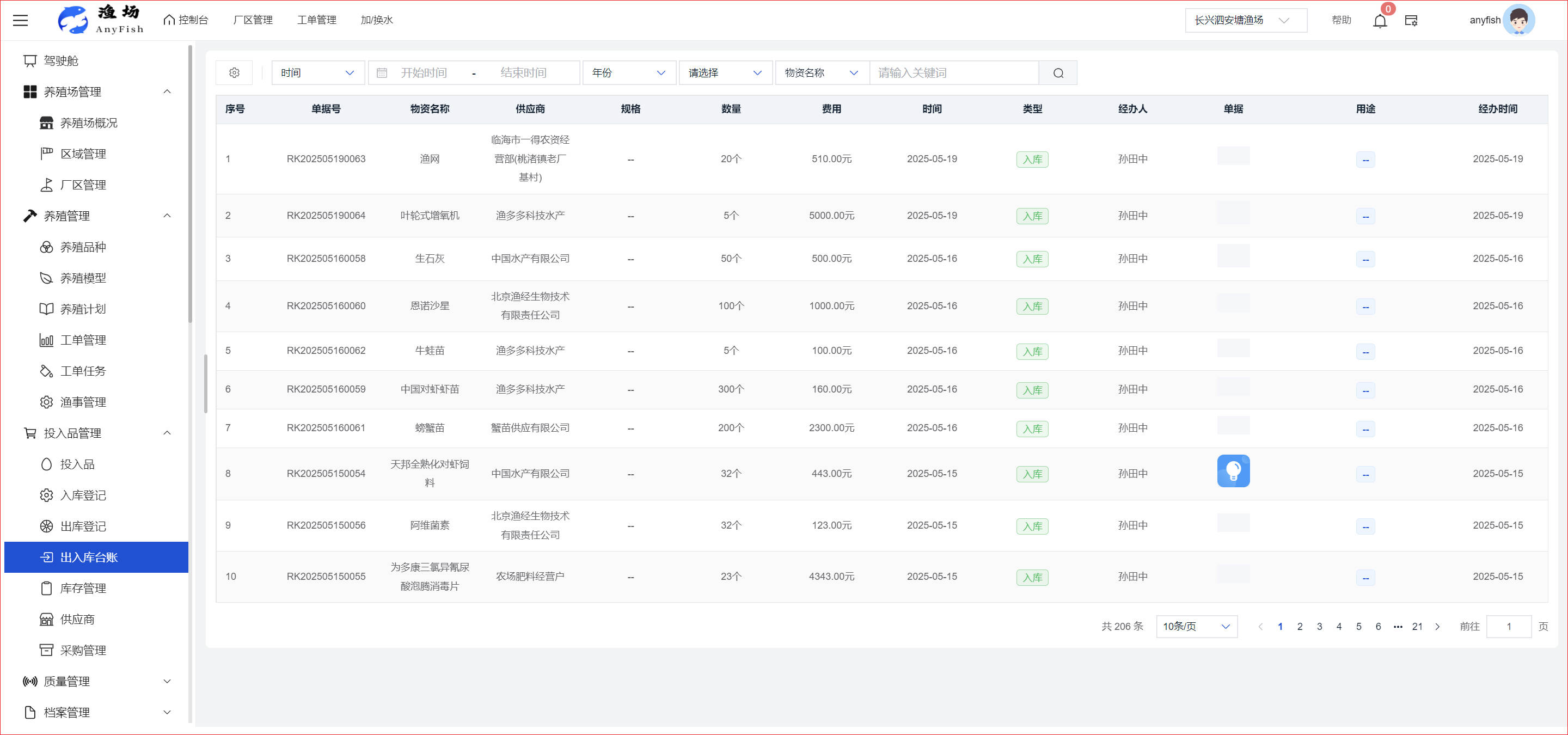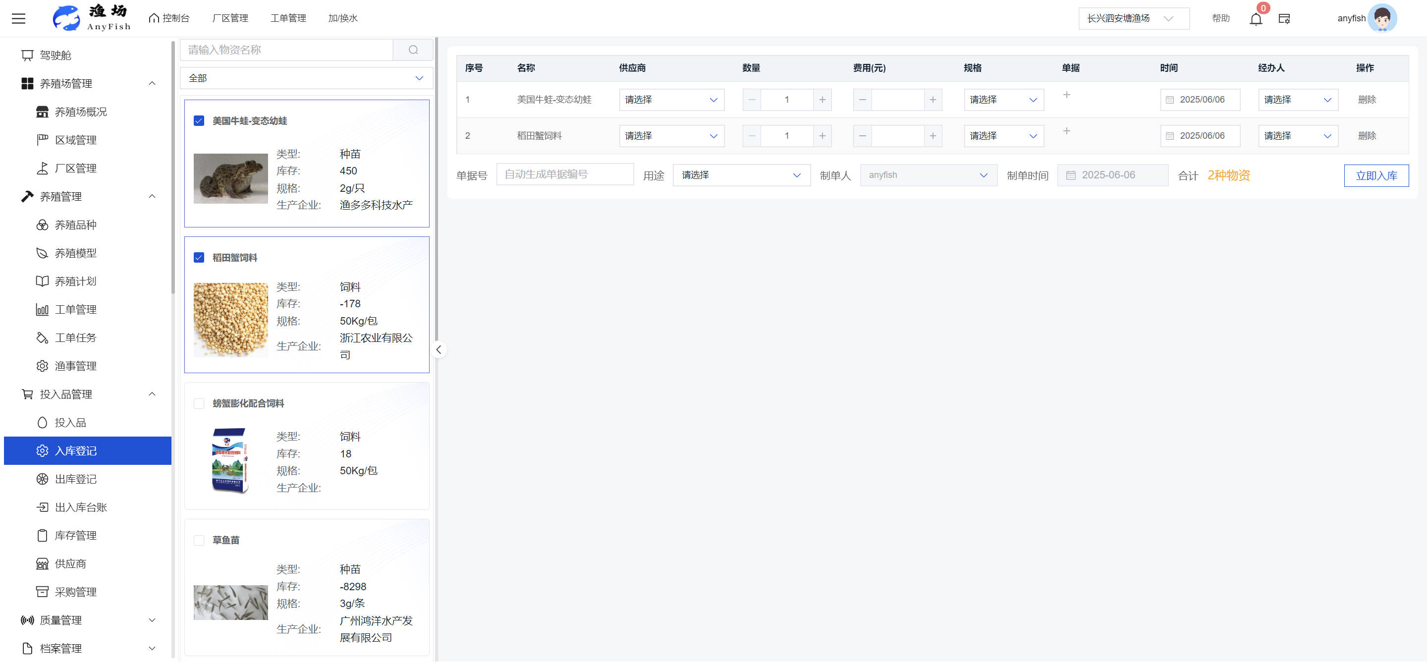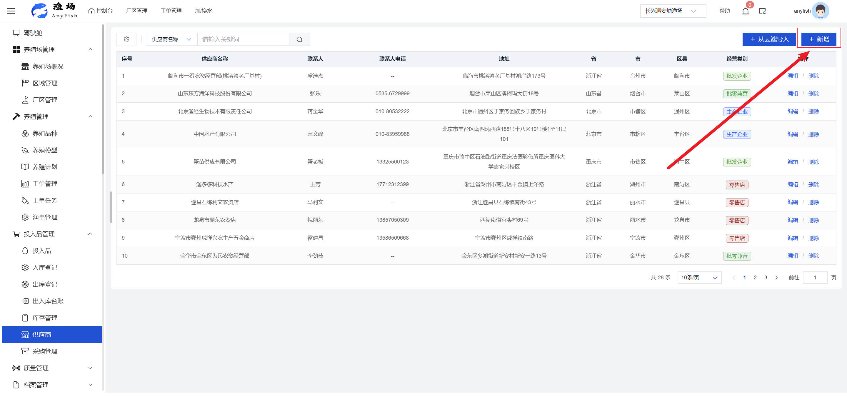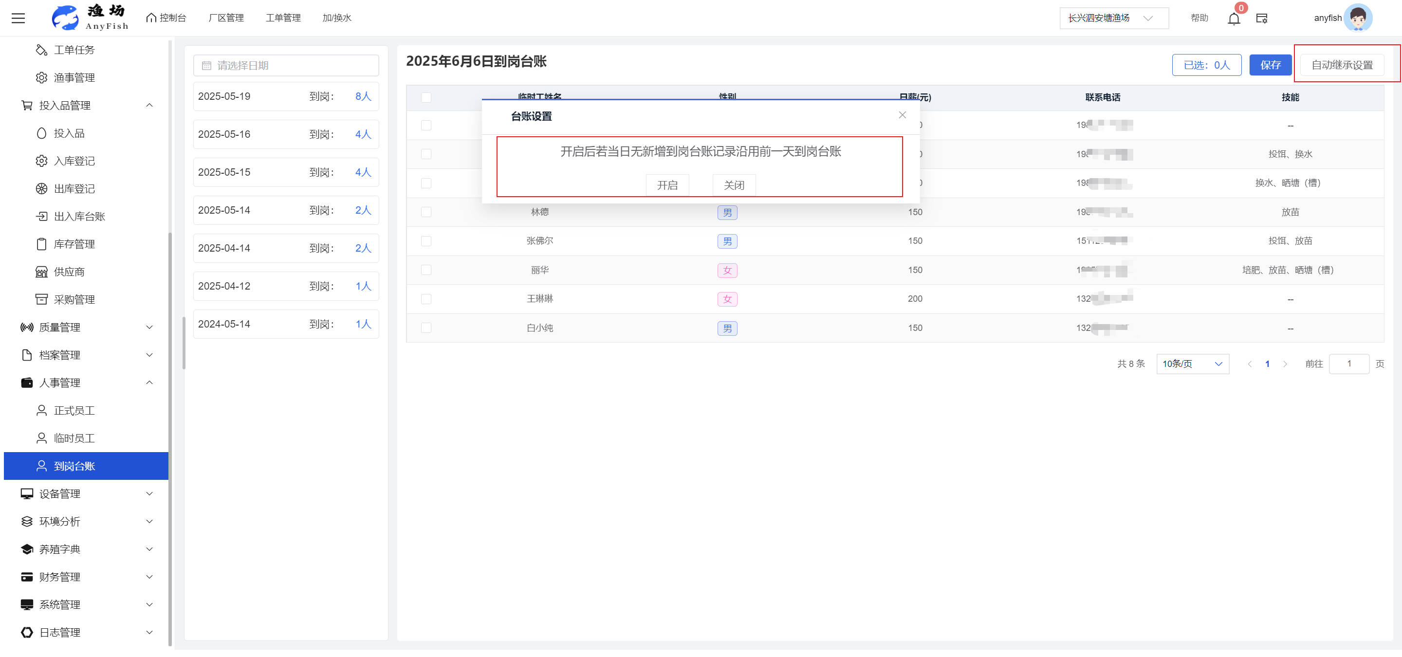 一、操作指南 1.1渔场概况 界面功能概述: 该界面作为渔场的首页及控制台界面,为用户呈现了渔场的整体概况信息。在这里,用户能够清晰地查看到渔场的数量、各个厂区的数量、当前在职的员工人数、实时的天气状况、已安装的摄像头设备数量以及是否存在离线设备等重要信息。同时,该界面还为用户提供了便捷的操作入口,例如可以进行渔场的管理操作以及新增员工等常用功能,方便用户对渔场的基本信息进行快速的了解和管理。  4.1.1.1 渔场概况 界面功能概述: 用户可以点击标红的地方跳转到渔场管理跳转到渔场管理界面。  用户点击界面中标红的区域即可跳转到渔场管理界面。在该界面中,用户可以全面了解渔场的各项详细信息,如渔场的占地面积、具体的养殖区域划分、在职员工的数量及基本信息、各类设备的运行情况、今日和明日的农事安排等。这些信息的展示有助于用户对渔场的整体运营状况有一个清晰的认识,同时也为后续的管理决策提供了有力的数据支持。此外,用户还可以在该界面进行一些基础的管理操作,如编辑渔场的基本信息、调整设备的设置等,以确保渔场的各项工作能够顺利进行。  4.1.1.2 渔场渔事 界面功能概述: 用户可以通过点击界面中标红的区域进入不同的渔事管理模块,例如培肥、投饵、收捕等常见的农事活动。  4.1.1.3 新增用户 界面元素功能概述: 该界面主要用于用户进行新增用户以及添加用户权限的操作。在渔场的日常运营中,可能需要不断添加新的员工或管理人员,并为他们分配相应的权限,以便他们能够顺利地完成各自的工作任务。通过该界面,用户可以方便地完成这些操作,确保渔场的人力资源管理更加高效和有序。  左侧搜索栏 :此搜索栏为用户提供了一个便捷的方式,允许用户在输入框内输入关键字,例如部门名称的关键词,从而快速搜索到特定的部门。这对于拥有多个部门的大型渔场来说,能够大大提高用户查找部门的效率,节省时间。 顶部搜索栏:在这里,用户可以在输入框内填写用户名称或关键词,以便快速搜索到特定的用户。当渔场员工数量较多时,通过关键词搜索能够迅速定位到目标用户,进而对其信息进行相应的操作,如查看、编辑或删除等。  新增用户按钮:点击该按钮后,系统会弹出一个新增用户的表单界面。  用户需要在该表单中填写完整的信息,包括但不限于用户名、密码、姓名、联系方式、所属部门、角色权限等。填写完成后,点击保存按钮,即可将新的用户成功添加到系统当中,使其能够登录并使用系统进行相关的工作操作。  编辑用户按钮:当用户需要修改员工的信息时,可以点击该按钮。  系统会跳转到员工信息编辑界面,在这里,用户可以对员工的基本信息、联系方式、角色权限等进行修改。修改完成后,点击保存按钮,即可使修改后的信息生效,确保员工的信息始终保持准确和更新。  删除按钮:如果需要删除某个员工账号,用户可以点击该删除按钮。系统会弹出一个确认对话框,提示用户是否确定要删除该员工。如果用户点击“是”,则系统将彻底删除该员工账号及其相关信息;如果用户点击“否”,则取消删除操作,员工账号保持不变。在删除员工账号时,用户需要谨慎操作,以免误删重要信息。  修改密码按钮:为了保障系统的安全性,用户可以通过点击该按钮来修改员工的密码。  在修改密码的界面中,用户需要输入新的密码并确认,然后点击保存按钮,即可完成密码的修改。修改后的密码将立即生效,员工需要使用新密码进行登录。这一功能在员工忘记密码或需要定期更新密码的情况下非常实用。  4.1.1.4 告警信息 界面功能概述: 该界面是一个渔场概况列表,主要展示渔场的基本情况以及各类告警信息。用户可以通过该界面查看渔场的详细信息,如渔场名称、位置、占地面积、当前的渔事活动等。  同时,系统会将各类告警信息以醒目的方式展示出来,包括设备故障告警、环境异常告警(如温度过高、湿度过低等)、渔事任务超时告警等。用户可以点击相应的告警信息,查看更多详细的告警内容,如告警发生的时间、具体的设备或区域、告警的严重程度等。此外,用户还可以在该界面进行一些相关的操作,如确认告警信息、查看告警处理进度、设置告警提醒方式等,以便及时处理各类问题,确保渔场的正常运营。  4.2渔场管理 4.2.1.渔场管理 摄像头管理 :用户可以在该界面中对摄像头进行添加、删除、调整位置等操作。通过合理配置摄像头,用户可以实现对渔场各个区域的实时监控,便于及时发现异常情况,保障渔场的安全。  4.2.2 厂区管理 界面功能概述 该界面是一个池塘列表,主要用于查看池塘的详细信息,包括池塘的占地面积、养殖模型、养殖面积、生长周期等。用户可以通过该界面全面了解各个池塘的基本情况,为养殖规划和渔事安排提供重要依据。同时,该界面还为用户提供了多种操作功能,如池塘管理操作、查看池塘详细信息等,方便用户对地块进行有效的管理和维护。  4.2.2.1 池塘管理:  添加旁边的搜索框(与添加按钮分开) :该搜索框允许用户输入关键词,如池塘名称、投入品名称或相关信息,进行快速搜索。通过输入关键词,系统将自动筛选出符合条件的池塘信息,方便用户在众多地块中快速找到目标池塘,提高工作效率。 添加按钮 :用户可以在右侧输入要添加的池塘信息,